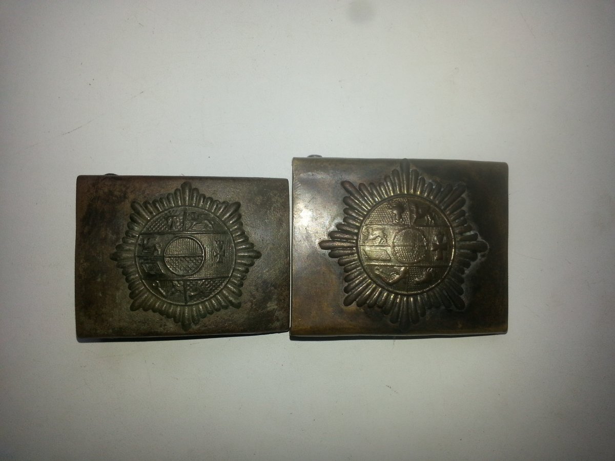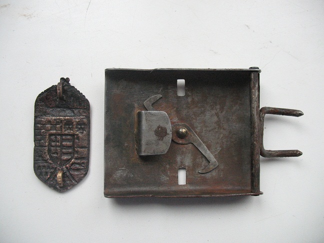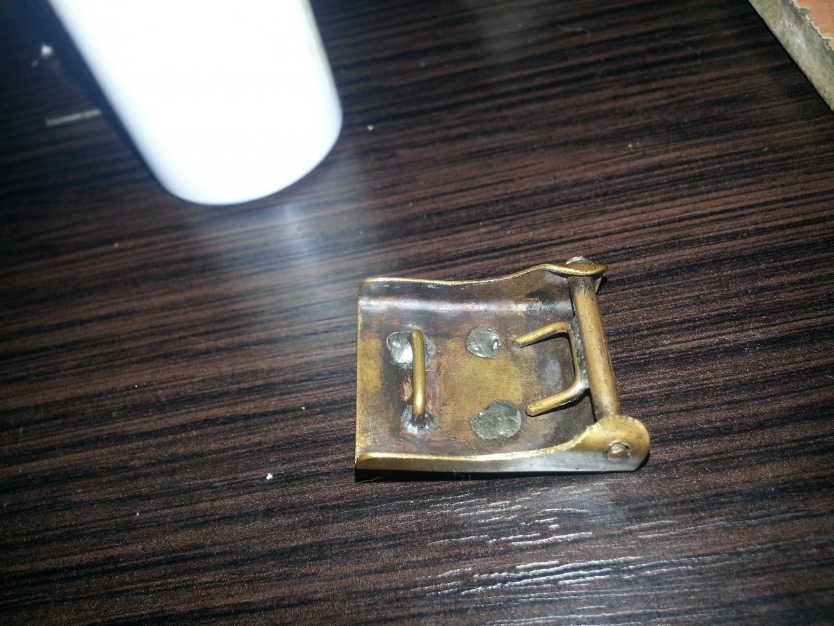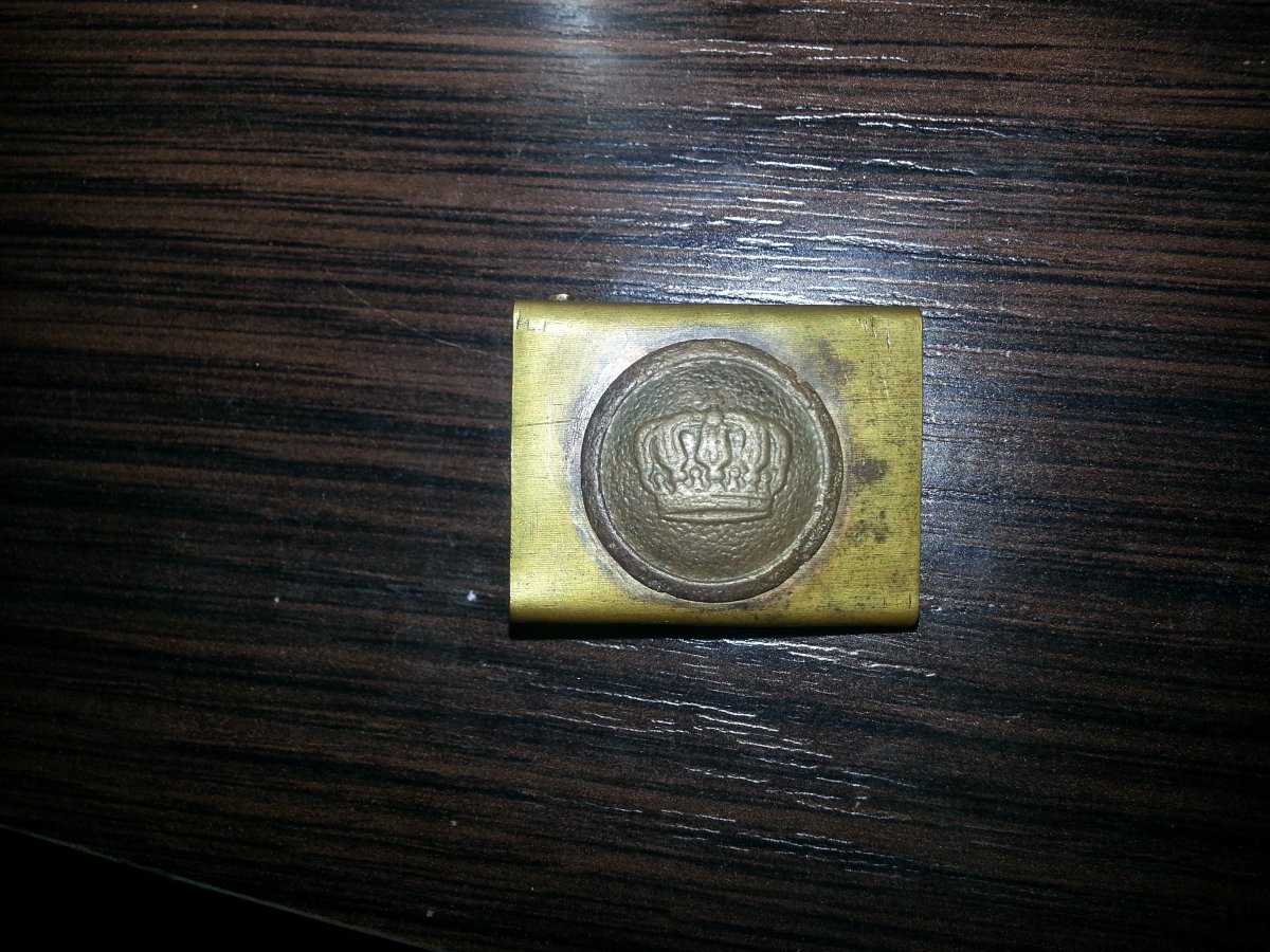 Доброго вечора! Вперше таку бачу, схоже на якесь рукоблудіє або окопну творчість! Основа від німецької пряжки а корона на пряжці на гудзик схожа австрійський! Втім цікаво щото є!)