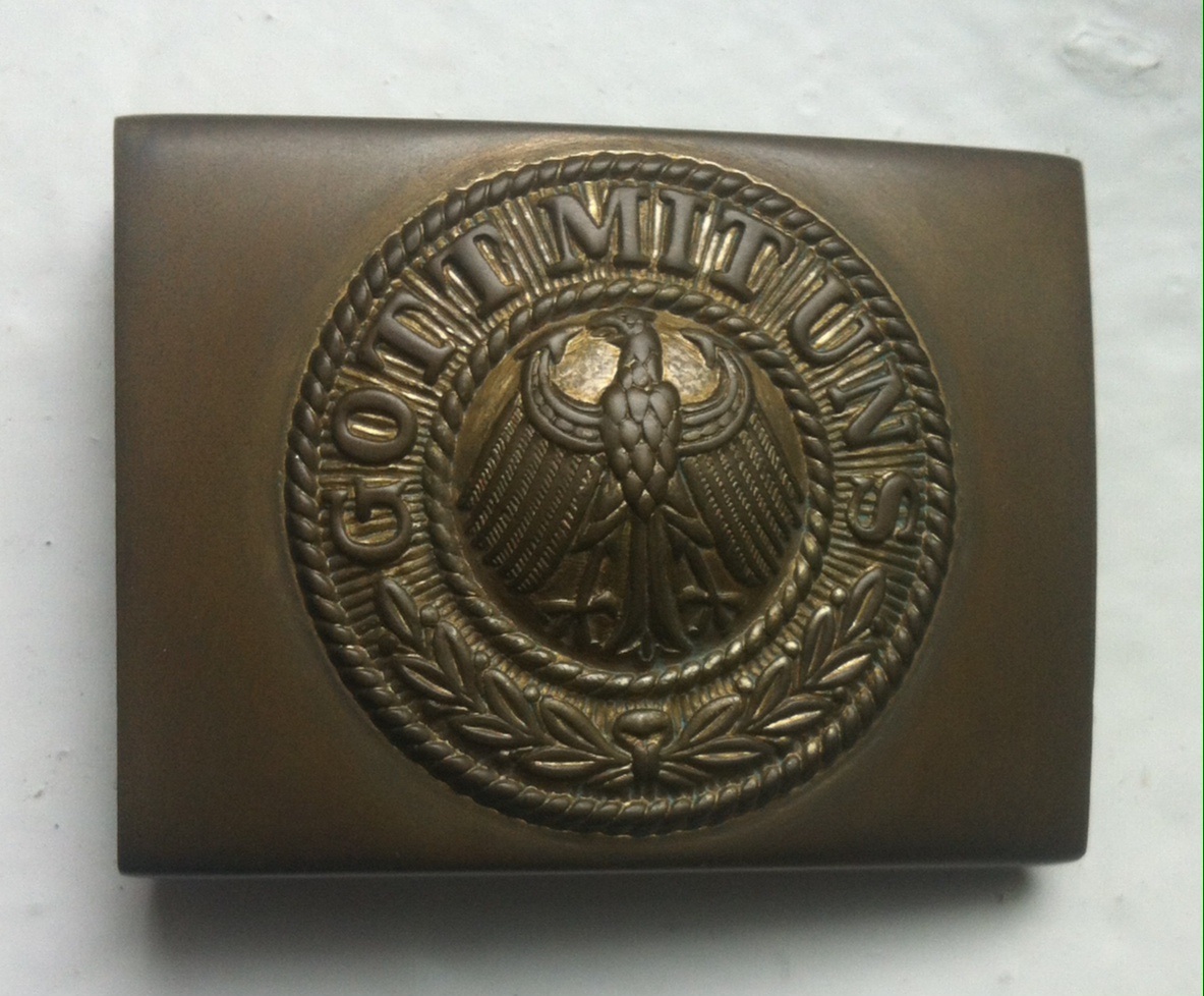 Это конечно не ПМВ, но вещица тоже весьма неординарная по частоте встречаемости - пряга рядового Рейхсмарине в латуни с остатками позолоты;)