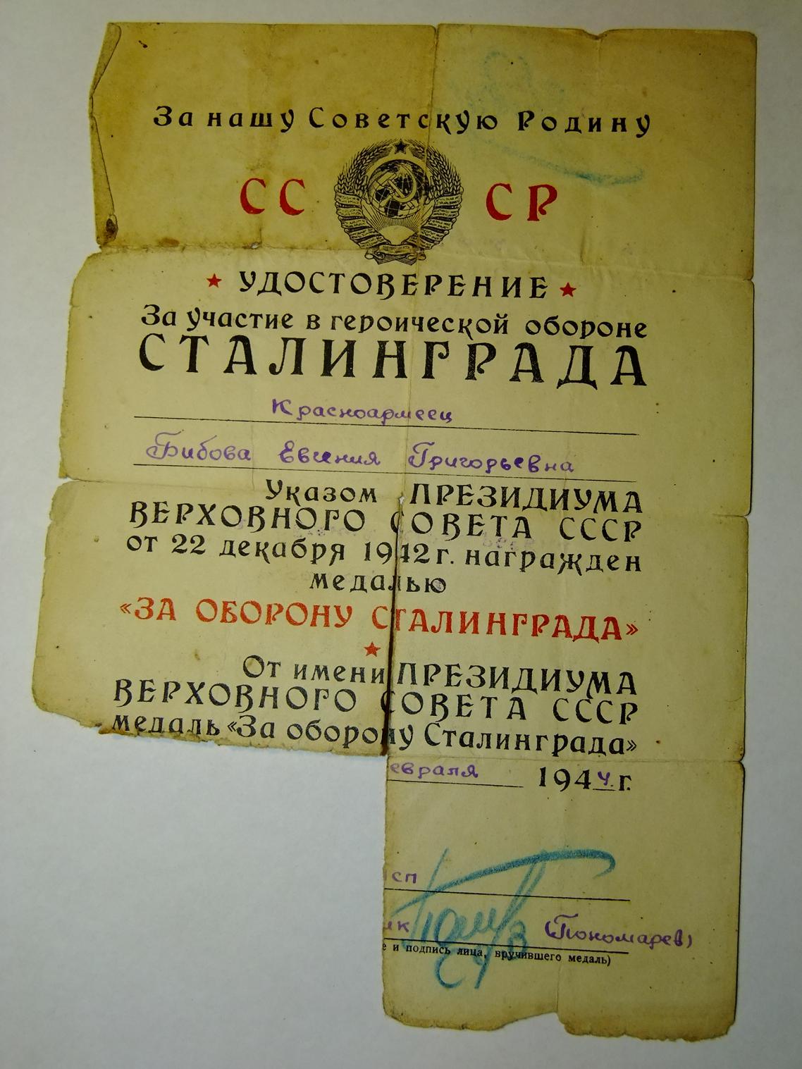 Моя бабушка добровольно пошла на фронт и сразу попала под Сталинград.
