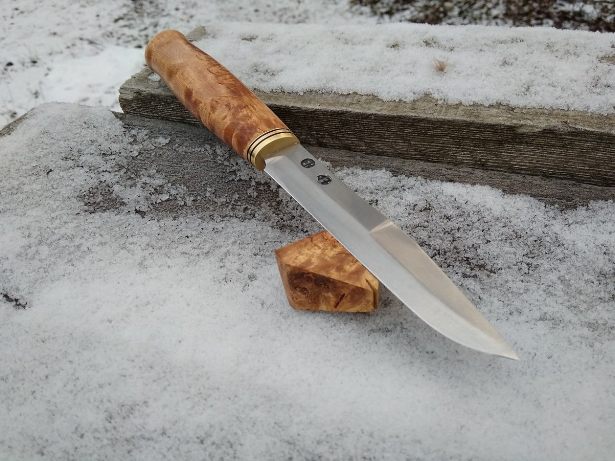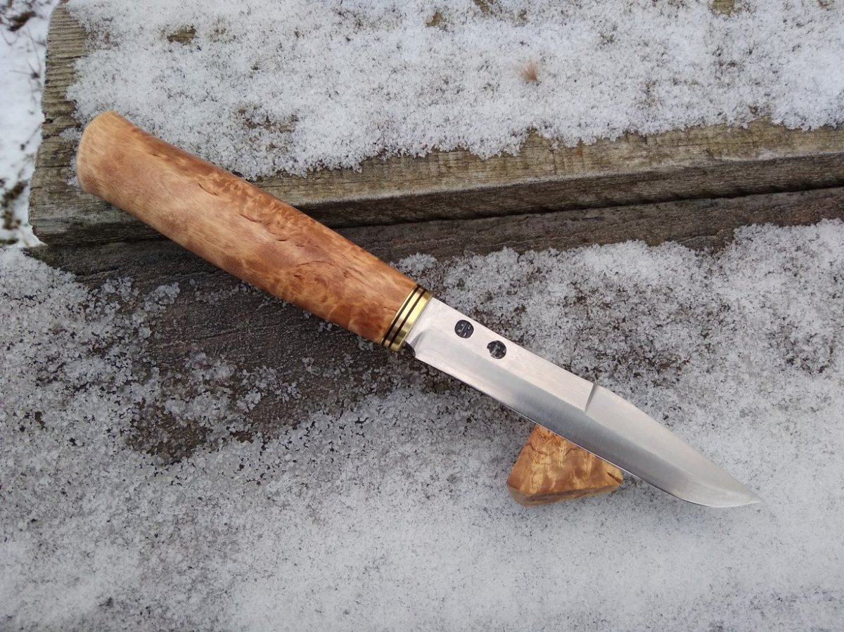 Из кожи хорошо, если наборной больстер делать. Я хочу подчеркнуть контраст цвета щечек и самого ножа из нержи. Щечки планируются из дерева или тканевого материала типа текстолита. Планирую фултанг замутить. Сегодня идея пришла в голову. Теперь как больстер еще замутить. Придется приваривать к полотну аргоном.