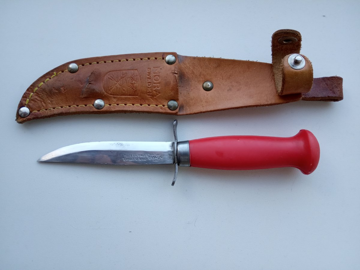 Приветствую. Так по случаю и совсем не планово, а скорее спонтанно приобрел старый 70 - х годов нож Мора скаут, нож был в очень страшном состоянии, сейчас есть время и я его чуть привел в чувство. Ножами Мора я увлекался ещё лет 10 -12 назад, потом со временем и с появлением других ножей я как то охладел к ним, ну так осталось пару штук - компаньон нержа живёт в ящике инструментов в автомобиле и 511 в рыбацком ящике. За все время когда я интересовался Морами у меня никогда не было ножа со сталью ламинат. И вот позавчера когда я чистил, полировал, точил купленого старого скаута со сталью ламинат я был очень сильно удивлен - все таки какой классный ламинат у Моры. Под обкладками из нержи сталь очень твердая, но очень легко и классно точиться до бритвенного состояния (реально бреет волосы с отскоком). Так же было очень интересно ножом порезать - резал на кухне - овощи, сало, утку домашнюю разделал, порезал на кусочки для жарки рыбу толстолоба 3.5 кг. Нож конечно небольшой и резать было не очень удобно, но сталь себя показала отлично, после всех работ нож резал бумагу с вывертами .