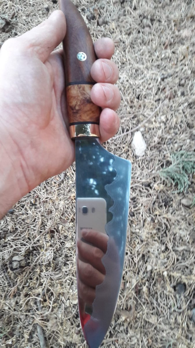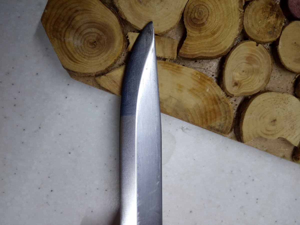 Приветствую, камрады. Купил б/ушный нож, меня всегда злили и бесили наши супер-пупер домашние диванные заточники, которые после первой заточки чуть затупленого и точенного в первый раз нового ножа на скандинавских спусках умудряются сделать выпуклую линзу и огромный подвод. Так и над этим ножом поиздевался какой-то криворукий знавец, но зато мне на карантине было чем заняться, два дня в ручную проигрался пока убрал линзу и подводы, нож свёл в ноль и он стал резать как и должен резать нож со скандинавскими спусками. К сожалению не сделал фото клина до заточки.