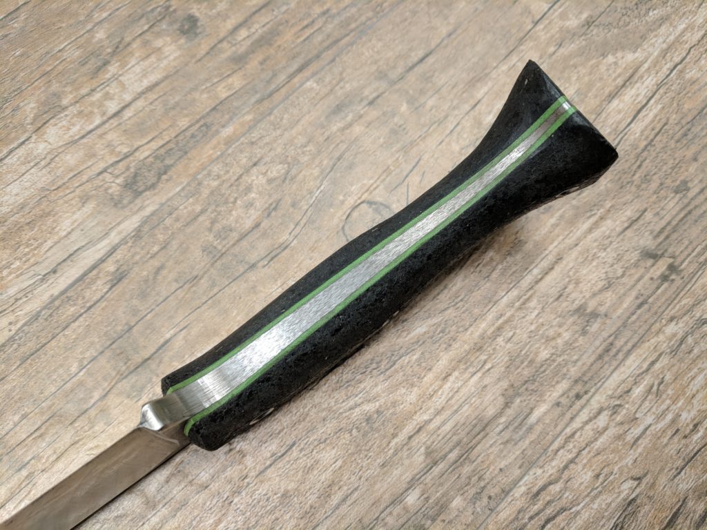 С топором те еще проблемы были. Не знал что за сталь китайская и калил на глаз. Сначала была красивая линия зонной закалки. Темная такая с переходом в серо-голубые тона. Вроде бы отпуск дал правильный. Но при первом использовании как раз по этой линии железо отлетело. Пришлось приварить кусок рессоры и закалить нормально, как 65Г. Второй год полет нормальный.