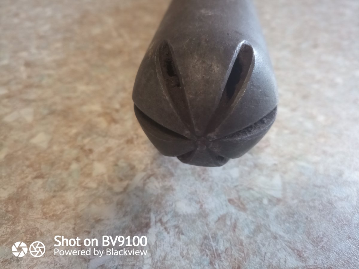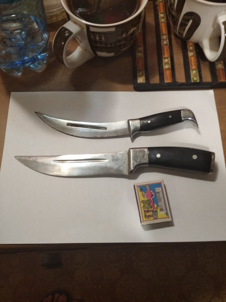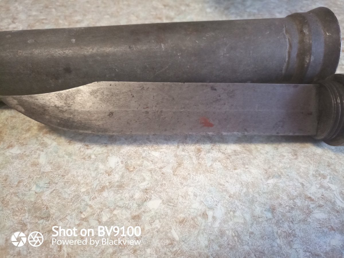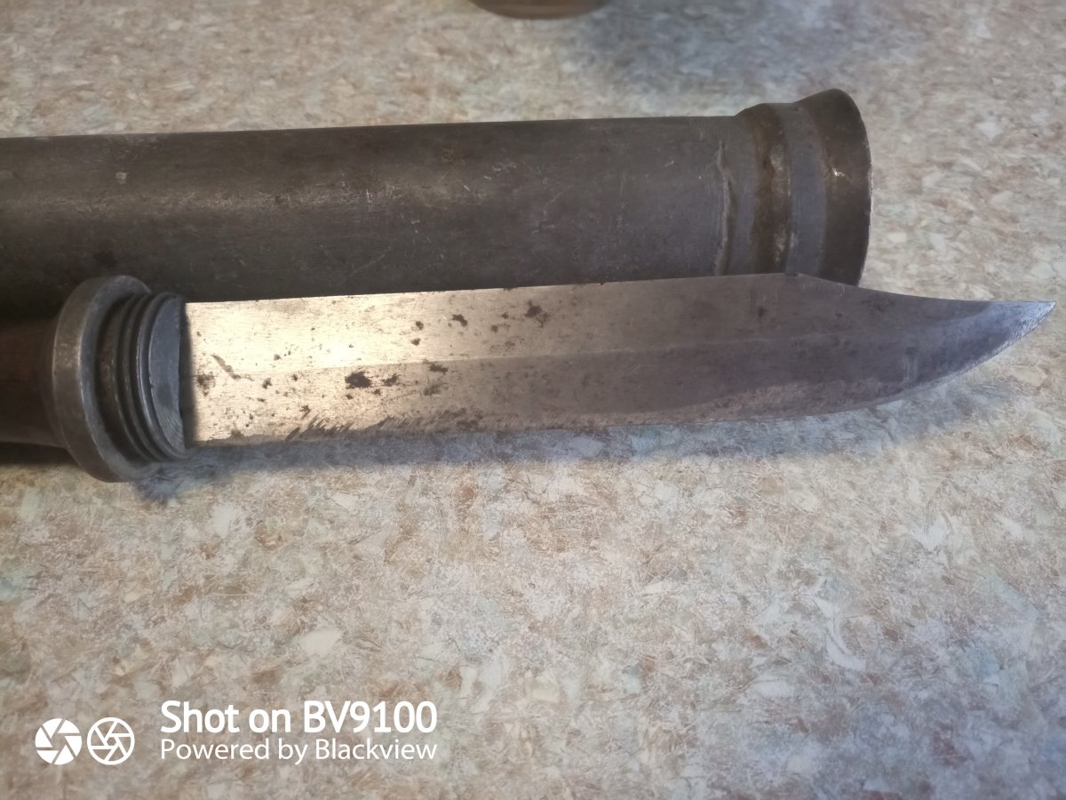 Я не образився. А незрозумів абревіатуру. Ножі люблю а ось в подробиці ніколи не вдавався. Пфф зрозумів. Ну то таке. Ножі, вказані Вами бачив в музеї ЕОПТР, коли та ще була жива.а також вдома у водолазів, що працювали з батьком. Батьку видавали інший. Вдома не залишився. А ті ножі видавалися в Індії, в СП Океанія. Великий на ногу, від акул а малий на бік від сіток. Так якась майстерня їх клепала але клейм нема. Сталь гарна а ось пропили зроблені не соосно, на великому ножі. Бачив такі самі комплекти, ще у двох людей. Тож це було зроблено партією. Нажаль піхов чомусь не було. Ні в кого. Мабуть ножі (топилися) а піхва прийшлось здавать..... Знайшов значки та трафарет для клеймування балонів: