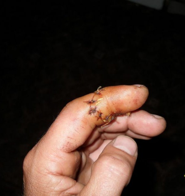 Шо есть, то есть... Уже показывал как-то фотку, как я его закрывал, на семь швов. Слабонервных просьба не смотреть!