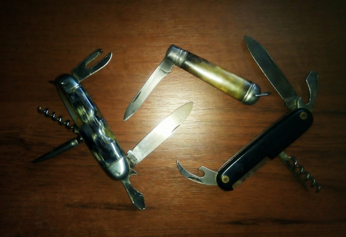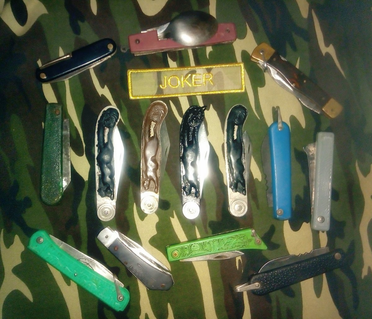 Вот, кстати, нож садовый, санитара, тоже хорош для этого дела, тоже в закромах есть с пластиковыми и деревянными ручками делали, несколько на аукционе забрали , а эти лежат в рюкзаке всего около 5шт. таких дома