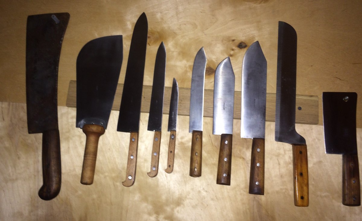 Та звичайно, що тими поварськими артєльниками на кухні ніхто нічого не ріже за рідким винятком. Хоча вуглецева сталюка там не погана, до того ж ножі ковані. Тобто, речі ті більше антуражні аніж практичні і "живуть" вони собі тихенько у літній кухні, де їм добре, затишно, а ще радують око знайомим та й мені також. А для того, щоб втяти кавальчик мнєса, є робочий інструмент. Наприклад, у мене простенькі але гостренькі ось такі: Ще є набір кухонних ножів Fiskars і не тільки. Було б тіко що різати...