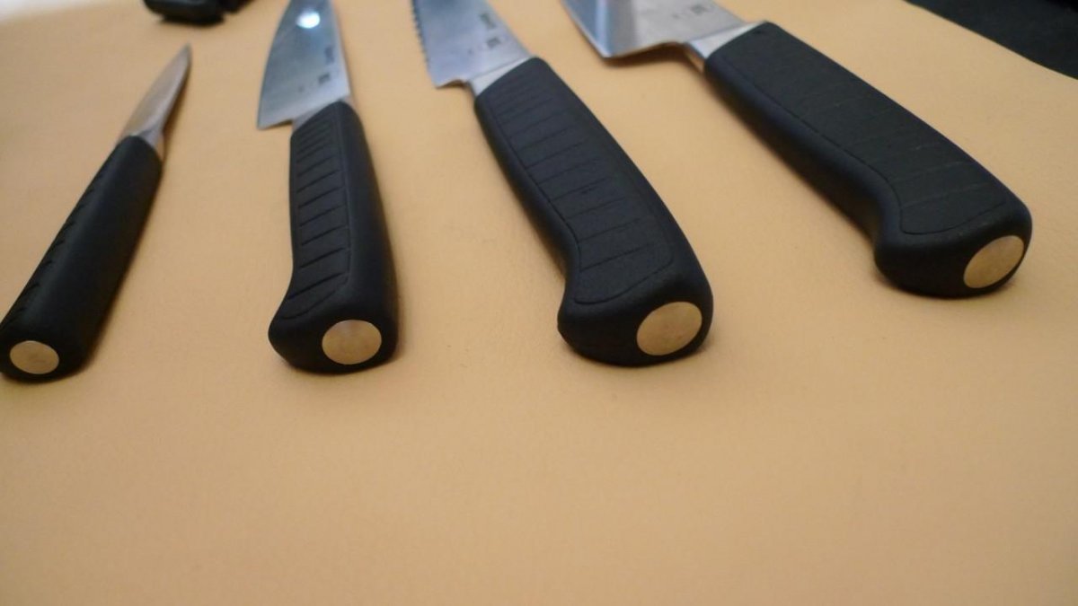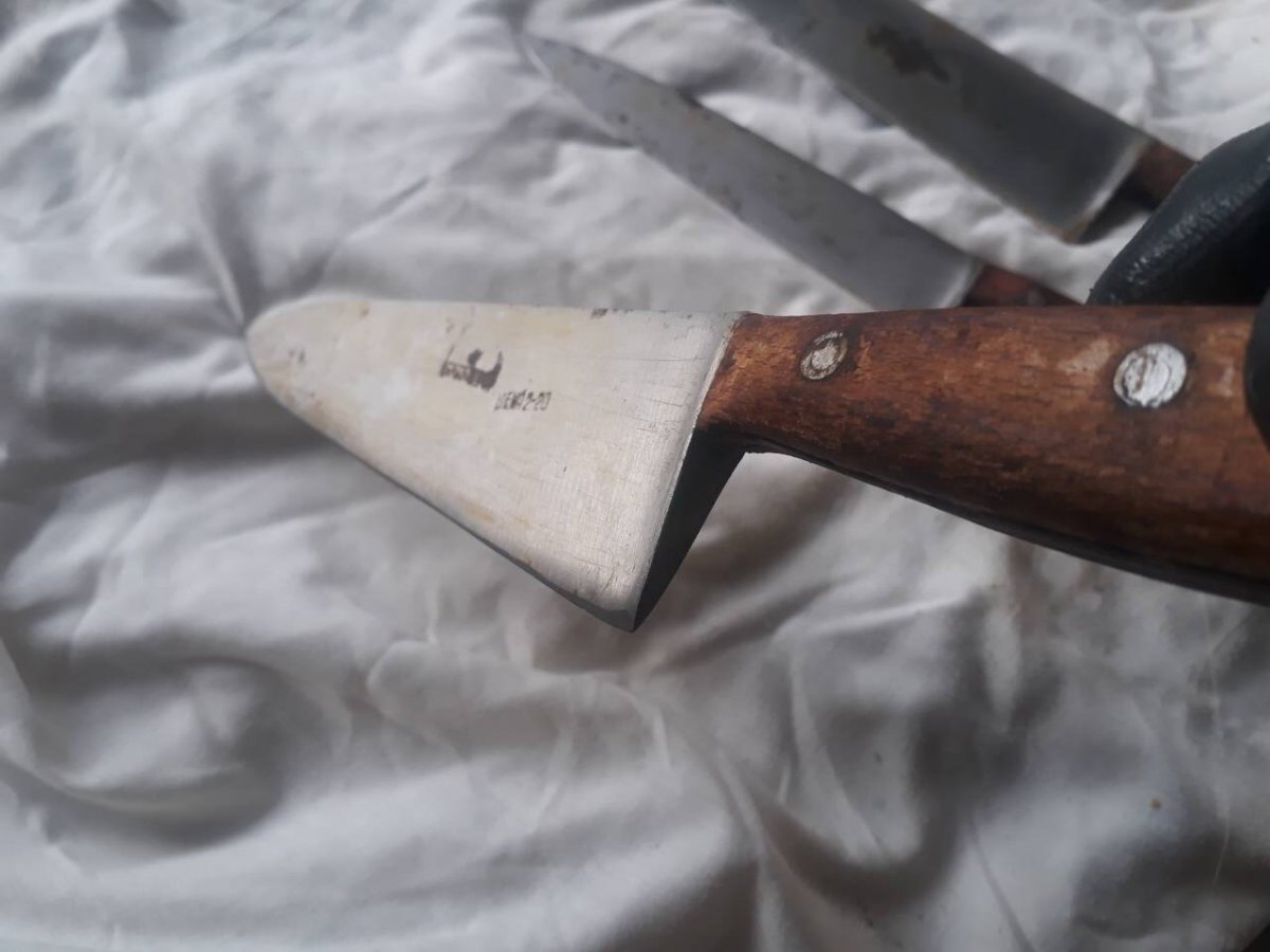 Я перепрошую. Колись працював військовим поваром, тож з ножами знайомий. Зараз теж готую залюбки. Муляє питання: Оці трійки Ви збираєте, купуєте, міняєте, як колекціонери? Навіщо вони Вам? Чи ножів сучасних замало? Сталюка там всяка, залежно від виробника, були такі, що і наточити неможливо було. Ручки коляться і наприклад мені, з невеликою рукою, були незручними, особливо коли треба було обвалувати пару туш зразу. Форма та спуск ножів теж на любителя. В мене є декілька наборів, батьки колись купували, коли треба було все діставати. Але їми не користуюсь.