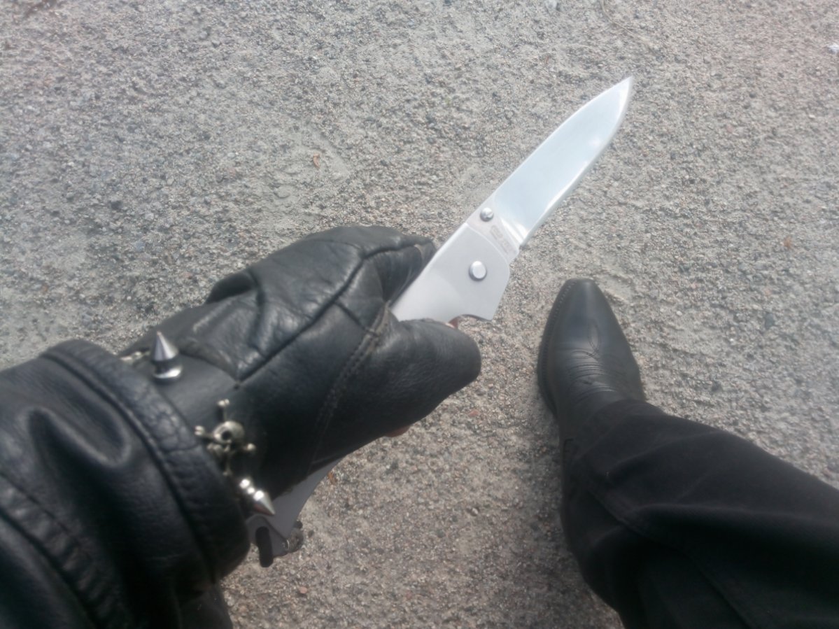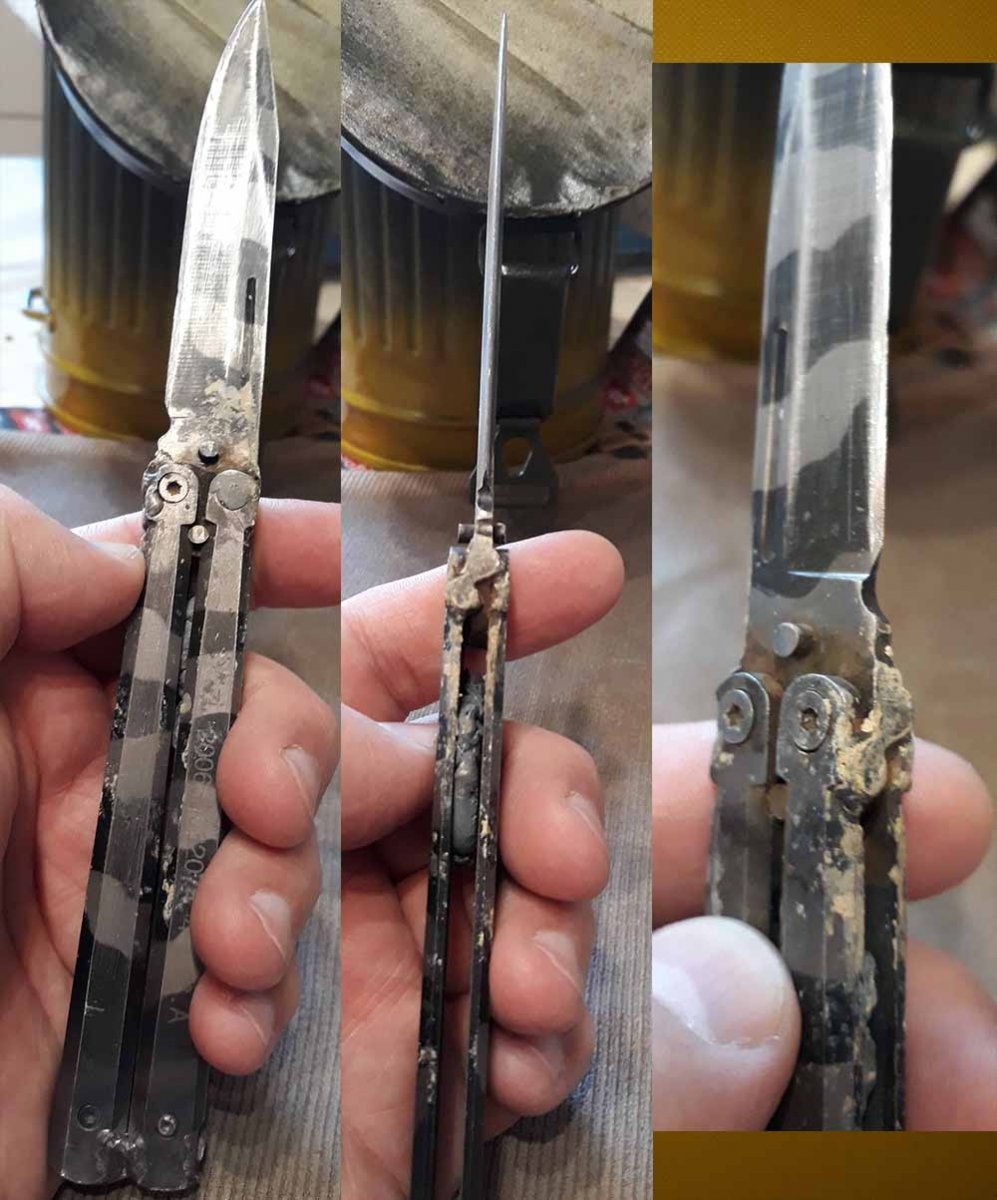 ВТОРАЯ ЖИЗНЬ БАЛИСОНГА. Вчера здесь вспомнил за свой первый и последний Балисонг. Покупал его очень давно. Нож из семейства Grand Way, модель 1024В13. Сейчас погуглил и, как ни странно, он до сих пор в продаже, продают его аж за 204 грн. (такой он хороший). Купил я его исключительно как игрушку. Но даже толком поиграть ним не получилось. Этот "балисонг", это материализовавшийся, сбывшийся ночной кошмар ножемана. Буквально всё ходило ходуном, ничего не держалось кучи. А винты так вообще жили своей жизнью, это не винты, это злобные бесы которые раскручивались сами по себе, буквально на глазах. У винтов этих видимо была одна задача, поскорее покинуть сооружение которое Grand Way назвал балисонгом. Понятно что за марку стали и твёрдость говорить вообще не приходится. Короче, буквально за день-два он мне надоел, потерял пару винтов, так и не смог заточить, естественно выбросить жалко, поэтому закинул его в ящик с инструментами. Потом понадобилось что-то похожее на нож (чтобы не жалко было), вспомнил, нашел, сваркой грубо собрал его в кучу, кое-как подточил и вуаля, теперь и ему нашлось применение. Не ахти какой, но всё таки инструмент.