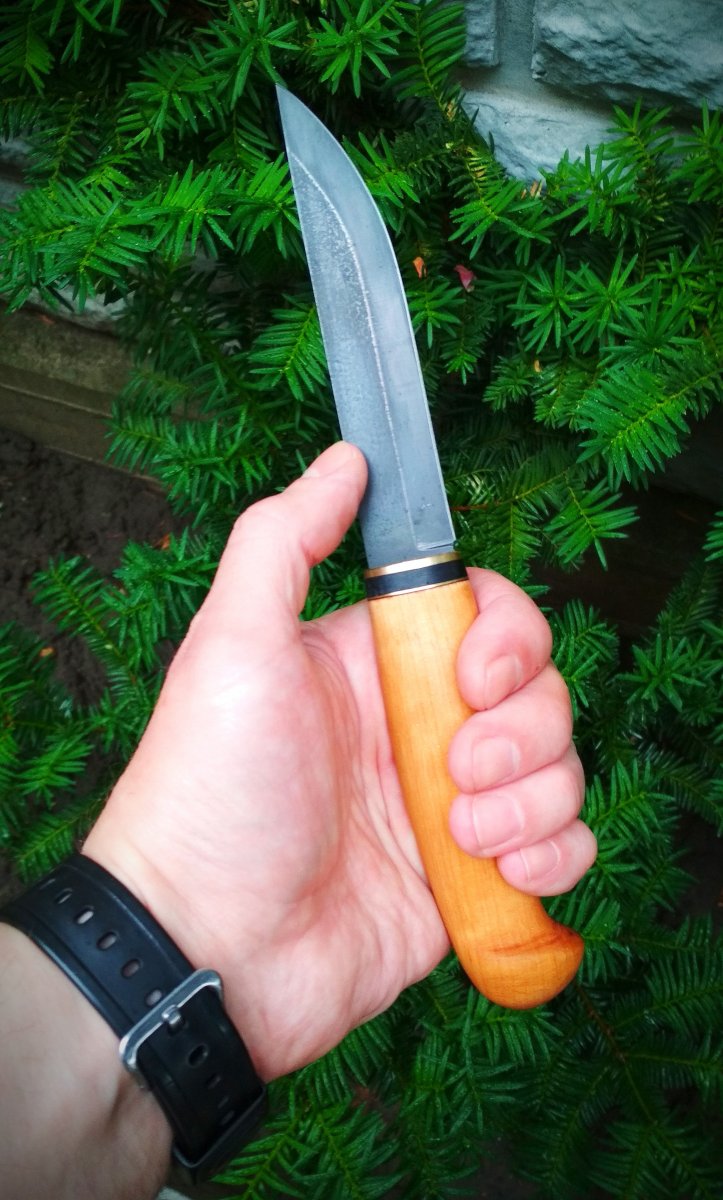 Нож красавец. Нравится. А рукоятка из какой древесины? Могу ошибаться, но по фото вроде не стабилизирована?