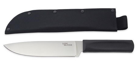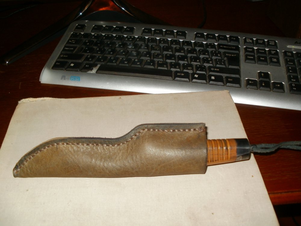 Оживлю темку полусамоделкой:).Планировалось приличных размеров нетолстый нож для готовки на природе.Выбор пал на Колд-Стил серии Хантер(это Лонг) по причине доступной цены и отличного клинка.Рукоятка и ножны в оригинале были ужасны-ручка квадратная,короткая,скользкая и травмоопасная.Ножны-так,из серии "отвяжись мальчик"-жалкий кусочек картона,скреплённый одёжными заклёпками и петелькой из багажной лентой.Для рукоятки было выбрано сочетание тропического дерева "зебрано"с оконцовками из белого и однородного лосиного рога.Монтаж-cs36PS-1.jpgвсадной,ножны-седельная кожа натурального цвета,немного отформовал под основание рукоятки.Вот что получилось.