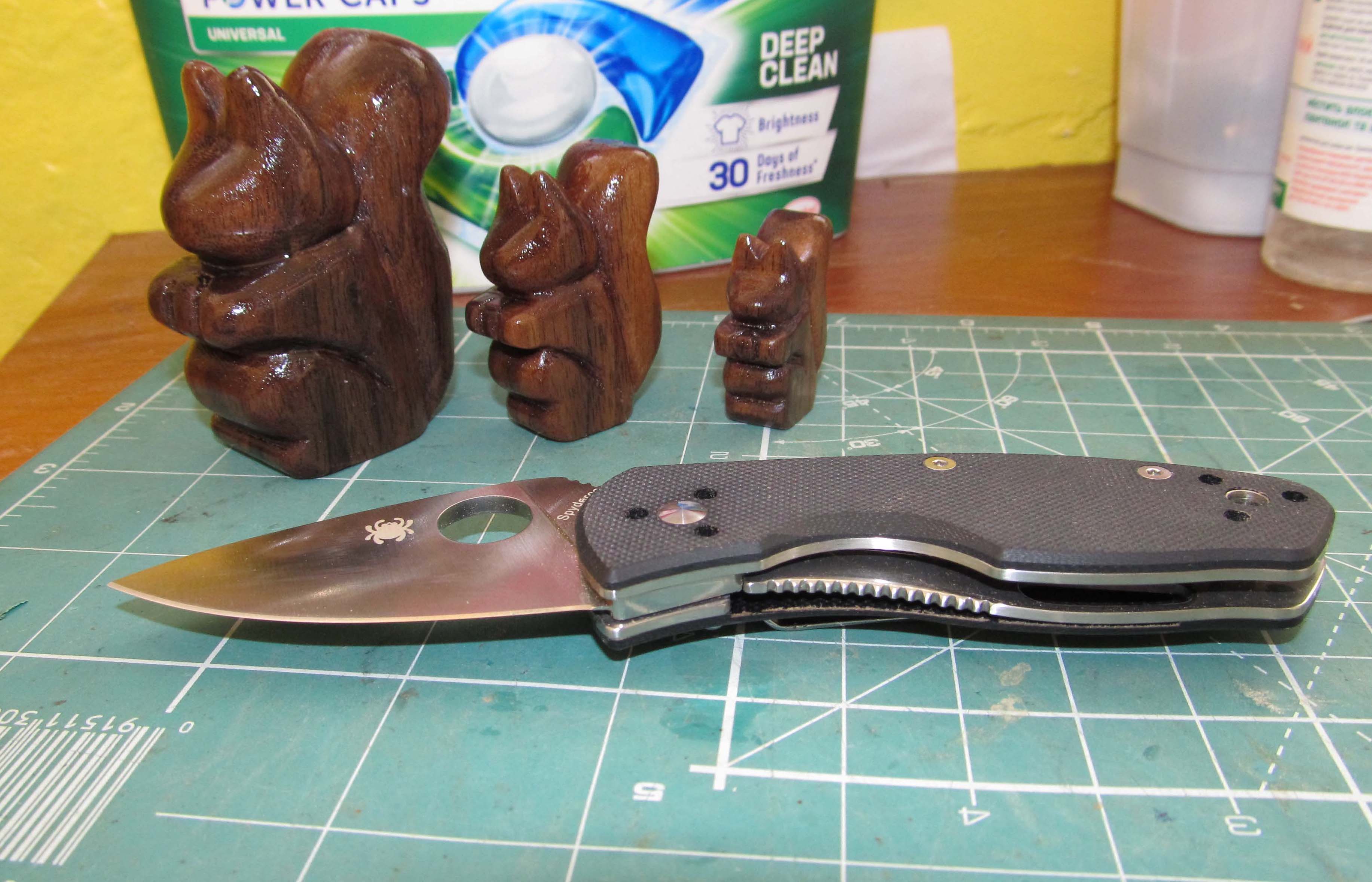 Для резьбы маленьких скульптур, игрушек- подходит плохо. Слишком длинный клинок. Для резьбы по дереву малых скульптур нужен клинок 30...60 мм. Лучше контроль реза. И часто для контроля движения ножа - не только рука на ручке ножа , но и палец на тупой стороне клинка ближе к кончику.