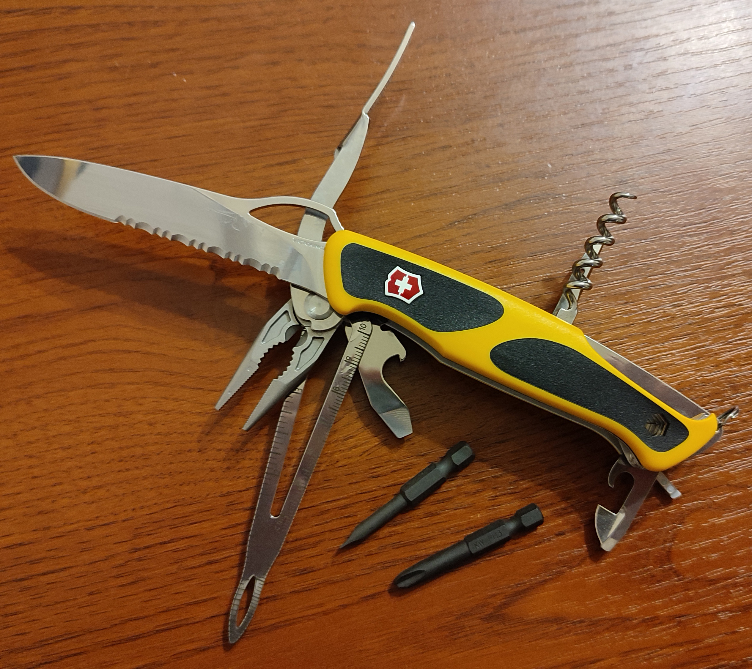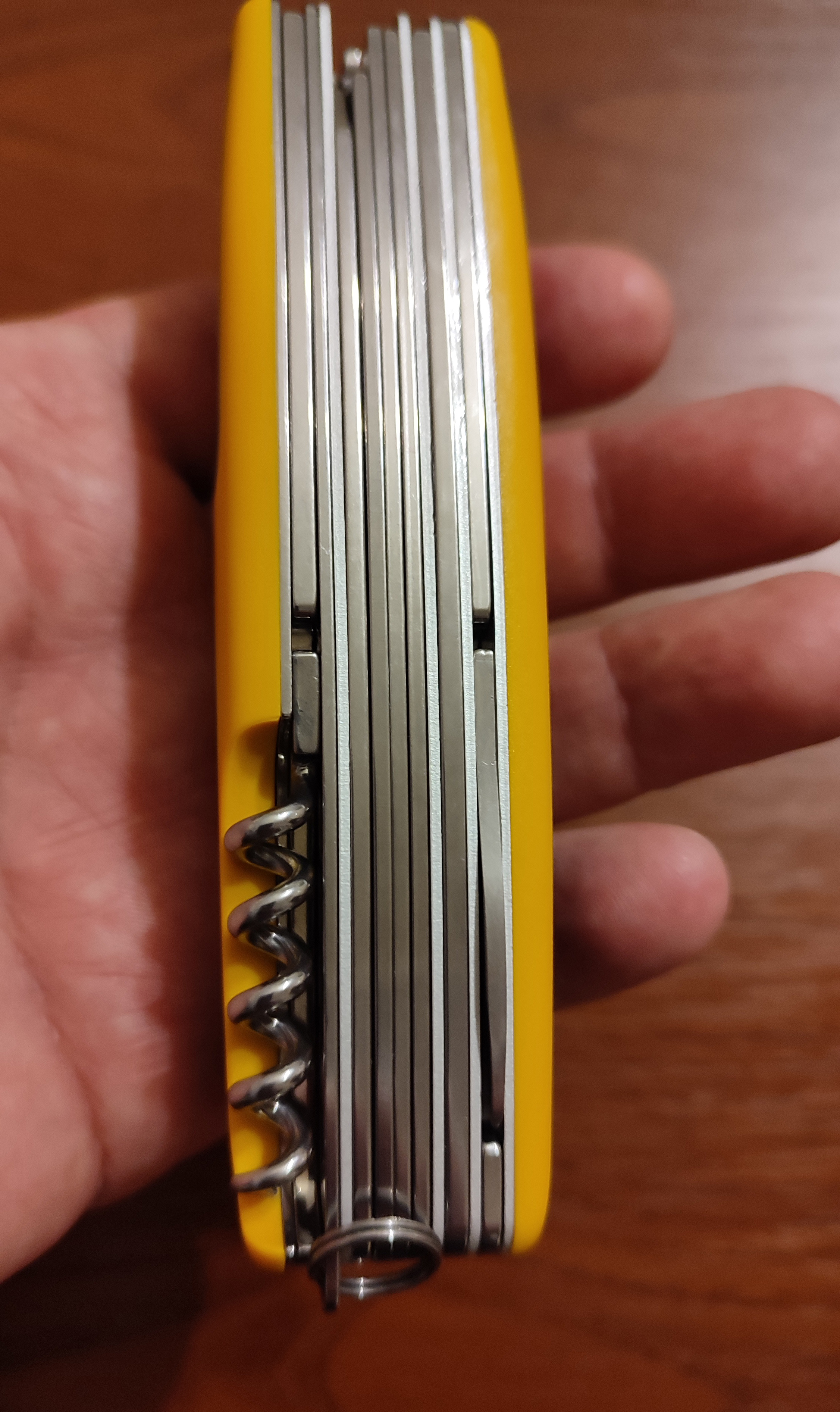 Сам жовтий вікс, боцман. Дуже прикольний! Подумав, позгадував...Під ті задачі, які можуть випадково виникнути, або планово. То все класно з ним. Стропоріз де треба, плейн - сирок порізати, до вина відкритого штопором. Пасатіжи, щось піджати, підкрутити. Такелажна свайка-голка-ключ. Консервні ножі. Шило. Вогонь а не ніж. В них ща є аналогічний в 110 розмірі, і недавно появився, з круглою свайкою! Це третій!