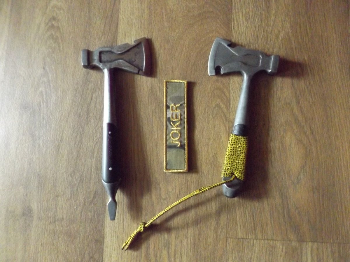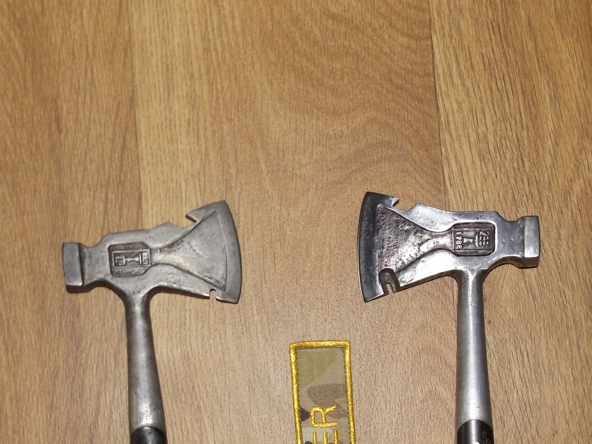 Доброго дня Вот два топорика таких есть, только клеймо на них в зеркальном отражении стоит, попутали или так изначально задумано было, с разных сторон лепить С желтой ручкой и темляком на аукцион выставил если что, там больше фотографий. С ув. Топорик 1788 год юбилейный Николаев гвоздодер молоток мультитул топор парусник