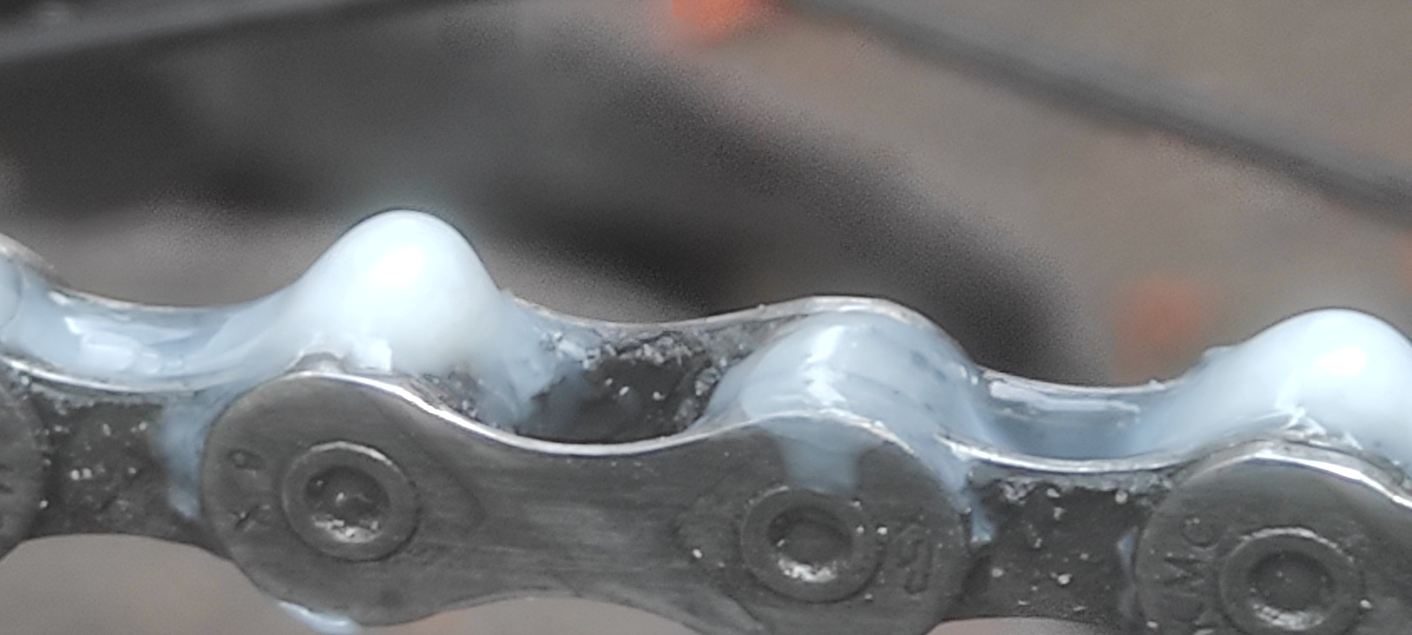 До5 % моторного мастила, я добавив синтетичну , і трохи ортофосворної. Дві середні свічки на яких написано що 100% з нежирного парафіну по 12грн на 0,5 калоші. Воно виходе густе як сметана, але на сонці або в теплі зразу стає рідким. Коли капа на ланцюг застигає . Якщо перший раз бажано зробити 2-3 рази. З повагою Треба у Пана Briter спитати, може якщо в керосині то буде краще, із-за того що іржу їсть )