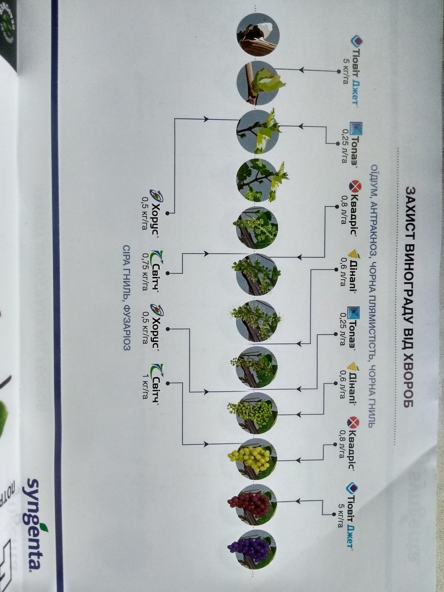 Вот такая прекрасная книжечка завелась )) Поделюсь немножко. Шо это и зачем. Схема обработок от различных заболеваний в зависимости от фазы вегетации куста. Не получается составить график обработок куста, привязав его к датам. Но получается составить график обработок, привязав его к фазам. Соответственно, данная схема носит рекомендательный характер, каждый обрабатывает, или не обрабатывает по своей схеме. Я вот обработал по своей - проипал вспышку антракноза (( Минимизировал применение инсектицидов, развел гору богомолов, проипал вспышку гроздевой листовертки (( Мораль сей басни очень проста, если есть своя схема обработок - пользуйтесь на здоровье, и учитывайте сроки ожидания с момента крайней обработки. Если нет никакой схемы, и большинство прыскает когда появилось спороношение и урожай зачастую потерян - то вот есть схема, можно брать за основу. Подлость грибов состоит в том, что по ним нужно работать тогда, когда ПОРАЖЕНИЯ НЕ ВИДНО. а когда уже видно - то уже как правило прыскать поздно. Плюс многие недооценивают пагубность висящих и спороносящих больных ягод, засевающих спорами окрест для того, чтобы жахнуть ваш виноград в следующем году. Если есть где гроны, битые вхлам оидиумом, с треснувшими серыми ягодами, то оставлять их на повисеть дело абсолютно напрасное. Их крайне желательно срезать сразу по обнаружению и сложить в спецкомпост, обильно потрусивши сверху золой. В опщем, пользуйтесь на здоровье, да прибудет с нами урожай, а с москалями филлоксера ))