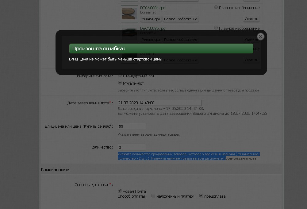 2. Пытался откорректировать цену в мультилоте (уменьшить). Выскакивает ошибка "Блиц- цена не может быть меньше стартовой цены"!! Но в мультилотах, нет стартовой цены :(