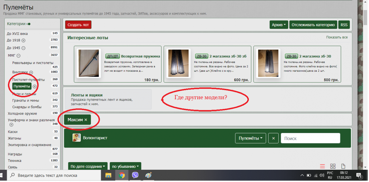 Добрый день. До обновления Аукциона никаких проблем не было. Все летало что с телефона что с ноутбука. После обновления программы у меня невозможно войти в подраздел. ВВожу "Винтовки" - вылазит "Пулеметы". ВВожу "Мосин" вылазит - "Маузер" или "Пулеметы". Прошу обратить внимание я активный участник Аукциона и при таком варианте работы Аукциона становится невозможно учавствовать в нем. С ув Волюнтарист. ПС НИЧЕГО НЕ ПОЙМУ СЕЙЧАС.