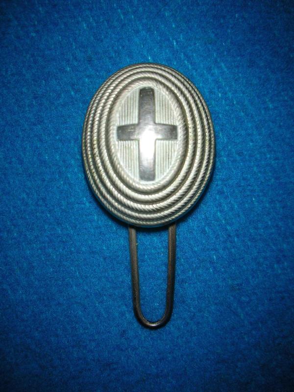 Это проволочная петля-заколка для фиксации наппины к шляпе. Посмотрите обратную сторону наппины, правда, металлической и на крайних двух фото видно, как этим, тем что внизу, крепилась металлическая наппина за ленту на шляпе офицера из 3-его альпийского артиллерийского полка JULIA. Нижний край проволочной петли выступает из-за ленты. Тот тип наппины, которую предоставил камерад vikking, хоть она и не металлическая, крепился к шляпе таким же образом. Думается вариантов исполнения наппин было много также как и вариантов их закрепить.