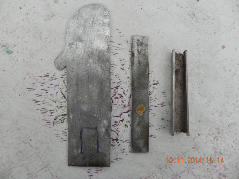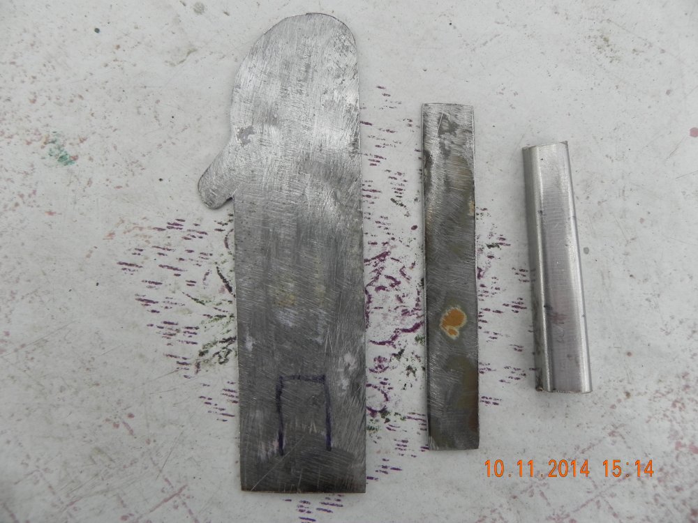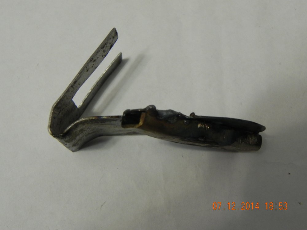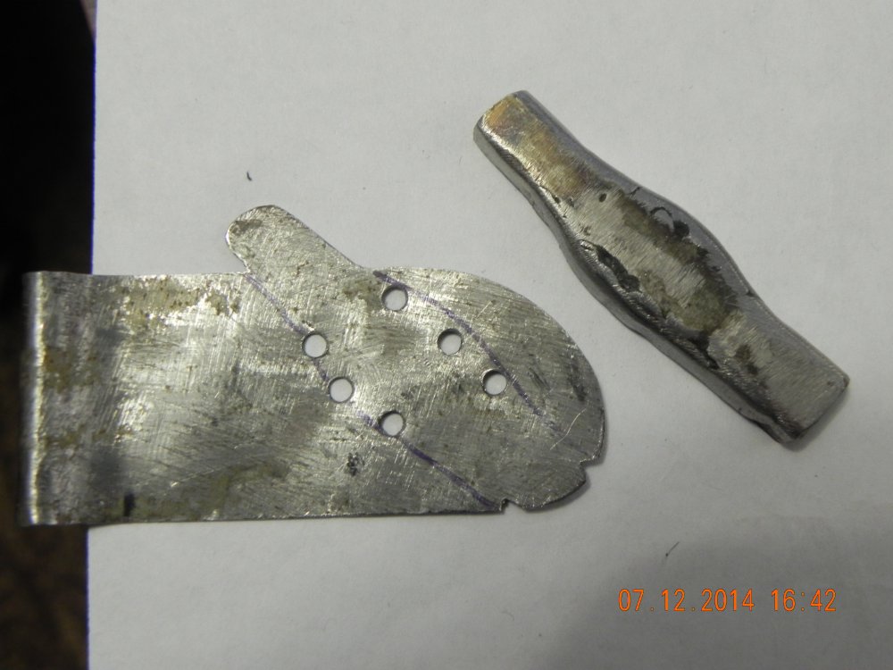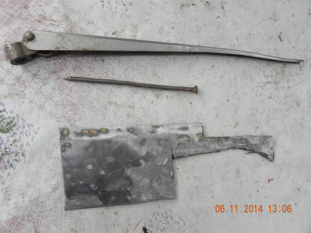 Значит так! Размеры брал из этой схемы. Масштабировал её на компе до размера 1:1, распечатал несколько штук, надел типа шаблонов. Из материалов взял кусок крыла от VOLKSWAGEN POLO производства Германии, дворник от АЗЛК 2040 производства России и гвоздь производства Украины. Методом наклеивания шаблонов на металл определился с примерными контурами. Получилось три детали: основа, гнездо под перо и язычёк-зажим (оську-гвоздь пока в расчёт не берём). Больше всего работы с гнездом для пера чтобы придать ему хитрую форму схожую с оригиналом. Дворник был из нержавейки, поэтому с пайкой у меня ничего не вышло. Осталась сварка. Полуавтоматом наваривал наплывы с боков и сверху, а на наждаке придавал форму. За три захода наваривания-обтачивания стало на что-то похоже. Если бы не нержавейка, можно было бы обойтись меньшими жертвами- не наваривать, а напаивать оловом, было бы обрабатывать и придавать форму легче в разы.