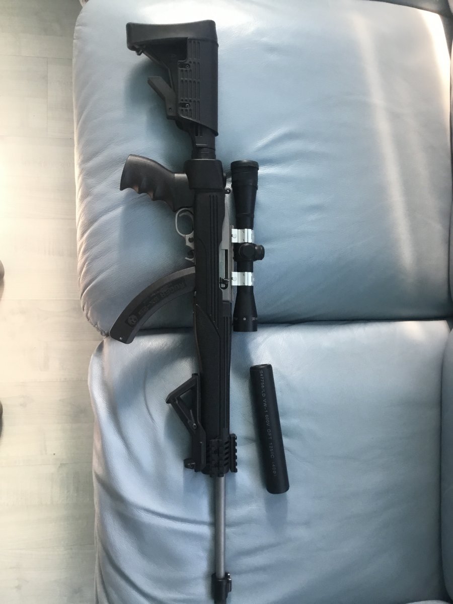Продаю Ругер 10/22 с тактической ложей со складным прикладом.Есть и родная ложа.Настре порядка 250-300 импортом.Есть 3 магазина новых на 25 и несколько сломанных,есть три родных десятки.Разрешение в Днепре.Цена 650 с прицелом.В комплекте неплохой глушачок.