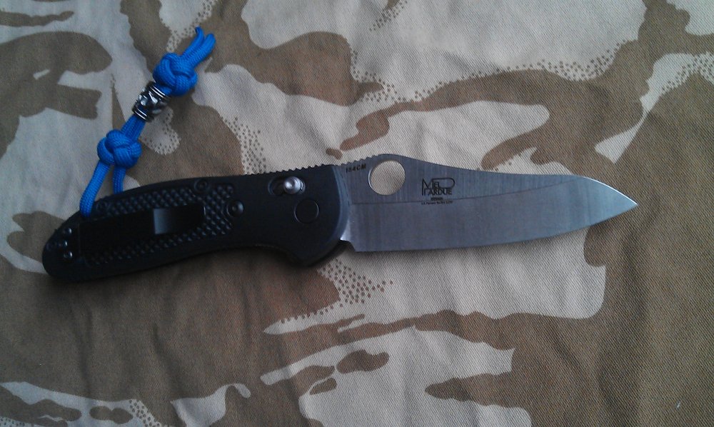 Нож новый,ничего не резал. Темляк в подарок. Отправлю НП или Гюнсел. Доставка за счет покупателя. Оплата по договоренности. Цена 2000 грн. Параметры ножа Benchmade 550 Griptilian: Общие Артикул по каталогу: 550 Страна производства: США Длина ножа в открытом виде: 205 мм (8.07") Длина ножа в закрытом виде: 117 мм (4.62") Вес ножа: 108 г (3.82 oz) Тип замка: Axis Lock Заточка: плейн (plain edge) Клинок Длина клинка: 86.5 мм (3.40") Толщина клинка: 3 мм (0.115") Форма клинка: модифицированный (modified drop-point) Материал клинка:154CM Рукоять Материал рукояти: пластик Noryl GTX Толщина рукояти: 16 мм (0.64")
