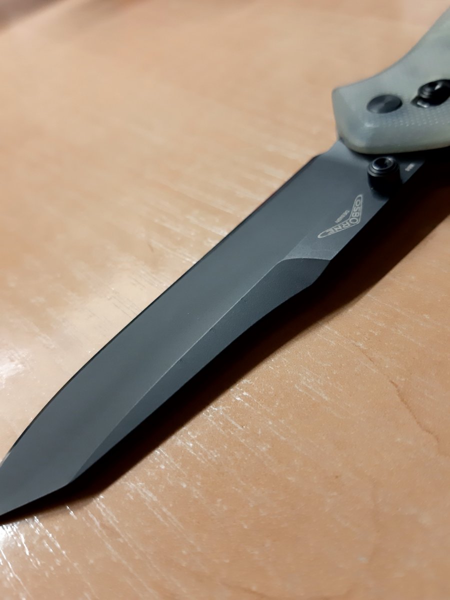 Обычно на нержу ставят длц. Это можно отличить по толщине покрытия возле режущей кромки. На серакоте оно чуть толще, более шероховатое и имеет более выраженные следы от гриндера. Другое дело, это качество покрытия. С одной стороны, удивительно, ведь зажим и нож был защищен, а оно оказалось хрупким. С другой стороны, серакот мягче длс (в контексте бенчмейда) и его главной задачей является защита от коррозии. Но практика показывает, как бы ни лелеяли бренд, серийное производство всегда имеет косяки.