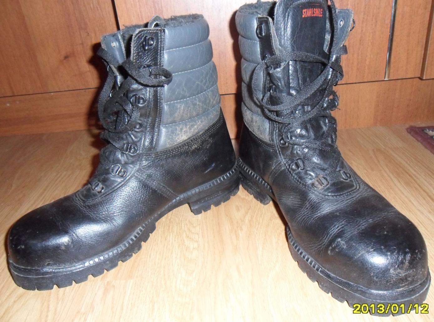 Бу.В хорошем состоянии! кожаные.с железными вставками в носах.Утепленные с мехом.на носиках немного покоцаные(сколы)Так как там метал... влагу и холод не пропускают.Производство Германия.Разм.43 наш.вес 1 ботнка 1 кг.))) Брал для себя но мне не подошли.продовец говорил что это горные ботинки ГДР. Цена 300грн.