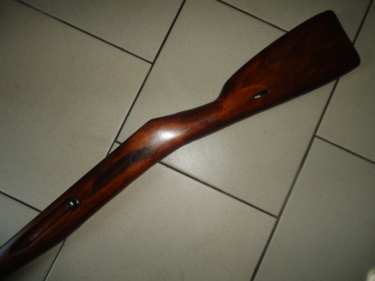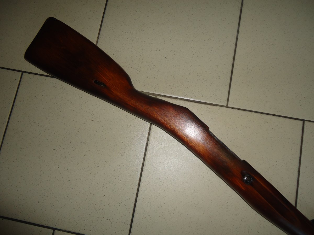 Продам оригинальное дерево на карабин Мосина. В состояние после ремонта - на дерево нанесен новый лаковый слой. В комплекте: ложа, накладка с наконечиками, шомпол, тыльник, кованые пружины ложевых колец и ложевые кольца. На правой стороне приклада виднеються остатки круглых клейм. Имеються заводские рем\вставки(на фото есть). Также имееться небольшой скол ложи в передней части с лева. Цена - 1430 грн. Доставка службой Новая Почта, после предварительной оплаты на карту привата. По всем вопросам в личку, в Крым, зону АТО и за границу, отправки нет