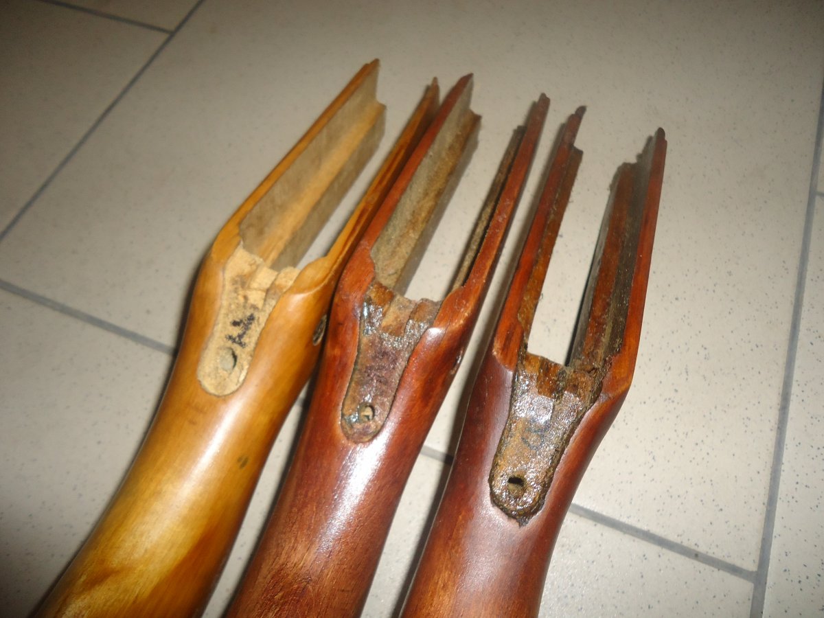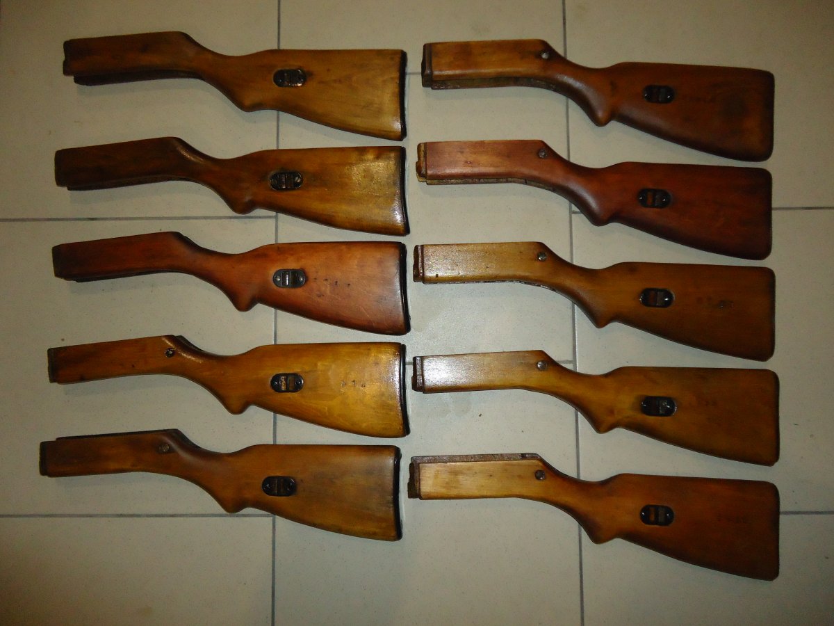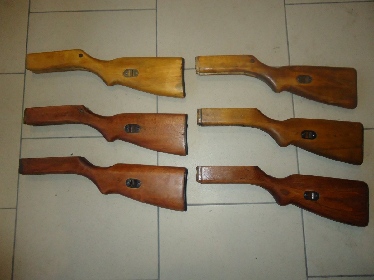 Здрвствуйте уважаемые, Камрады. Тема по дереву на ППШ вновь открыта. В наличии есть 10 штук. Дерево оригинальное( в комплекте приклад, тыльник, антабка) состояние Б\У, но после хорошого ремонта. В наличии есть дерево безнагельное и нагельное. Есть разные оттенки. Нумерация прикладов: левый ряд номера 1-5, сверху в низ(1-3 безнагельное дерево). Правый ряд также сверху в низ, номера - 6-10. Цена за безнагельное - 750 грн штука. все остальные по 700 грн за единицу. По всем вопросам в личку, доставка по НовойПочте, после предварительной оплаты на карту Привата. В Крым и зону АТО доставки нет.