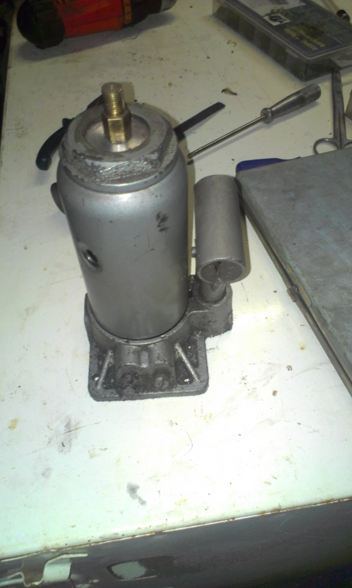 домкрат переделан под постройку насоса высокого давления,снят выдвижной шток,установлена пробка с штуцером есь также клапан с манометром фото докину позже,внутри поршень нужно только подключить компресор.вопросы в лс.цена 500 грн. Подключаем компресор к домкарату через стандартный штуцер,давление компресора опускает поршень в домкрате вниз,когда начинаем качать перекрываетса клапан перед штуцером и воздух из домкарата забиваетса в винт.