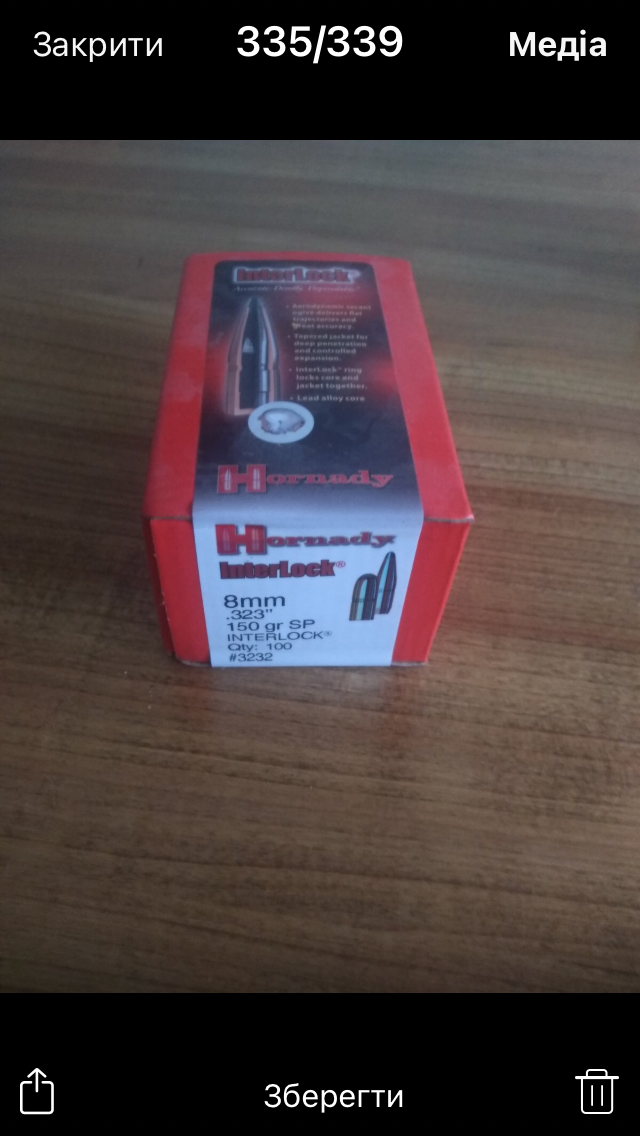 продам голоки Hornady-interlock 8-mm. '' 323'' 150gr. sp . одна пачка нова. в другій 32 шт. всього 132 шт. ціна - 1850 грн. 098 291 95 33 Василь