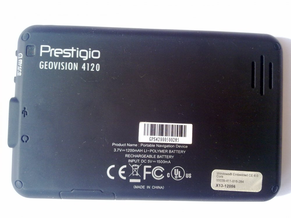 Продам GPS навигатор Prestigio GEOVISION 4120. Краткие ТТХ: Благодаря наличию у этой модели навигатора функции track back водитель всегда может вернуться в исходную точку маршрута, ведь весь пройденный путь автоматически пишется в память устройства. С помощью интерфейса USB в память гаджета можно при необходимости подгружать новые карты местности, для этого же можно воспользоваться слотом для карт памяти формата Micro SD. При питании от встроенного аккумулятора устройство может проработать до 2,5 часов. Использовал пару раз, есть потертости (из-за транспортировки с другими вещами). Работает превосходно. Прошу за него 400грн. Пересыл новой почтой за счет получателя, оплата на карточку приватбанка. В комплект входят: Карта памяти Micro SD 1GB, USB шнур для зарядки.