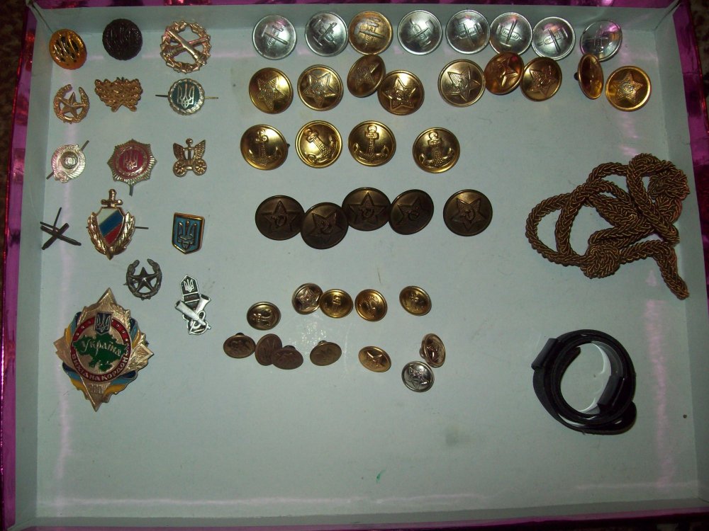 Погоны по 10 грн. шевроны большые 10 грн.маленькие 5 грн. петлицы 1 грн. пуговицы болшие 2 грн. маленькие 1 грн. знак 30 грн.