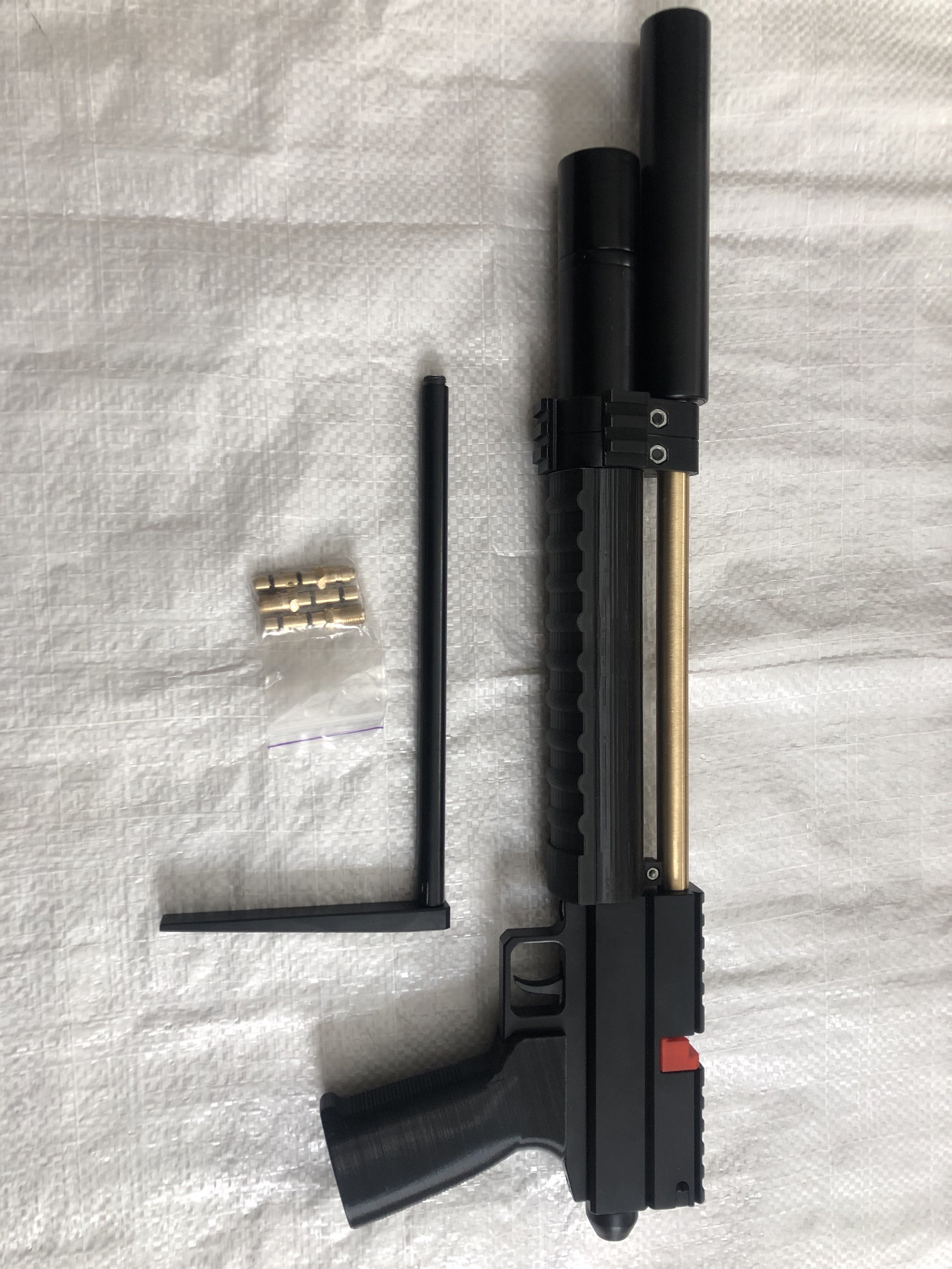 Продам.Кіт 130 кубів опрессований на 380атм,манометр 40мпа,порт 7мм. Коробка біатлонка,вівер,ствол латунь 28см,приклад на різьбі,СМ простий,вижимний,двухдетальний,схожий на крисячий. Вісімка з двума віверами. Налаштований 230-160атм близько 25ти пострілів 245-255-245 кулею 1.03,піджимом мажна підняти +10мис. Довжина 52см+приклад 25. Трохи бу тому ціна 9500грн,в комплекті все що на фото