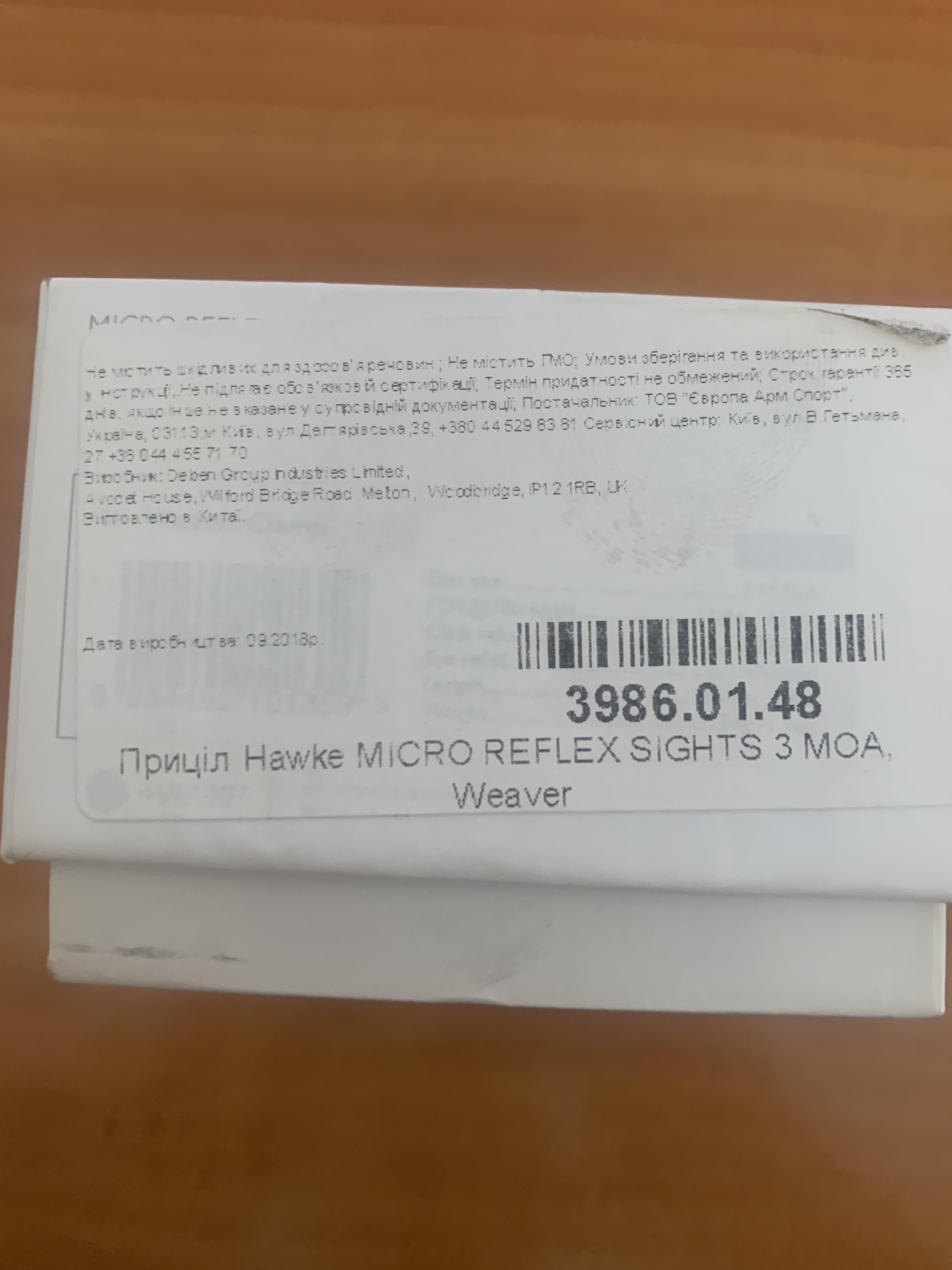 Продам Hawke Micro Reflex Dot 3 MOA. Состояние легкое б.у. Стоял на DB9. Настрел до сотни. Есть пару царапин на корпусе. На фото видно. Работает без нареканий. https://ibis.net.ua/ua/products/details/pricel-kollimatornyy-hawke-reflex-sight-3-moa-weaver/ Оплата на карту. Отправка НП. Цена 4500 грн.