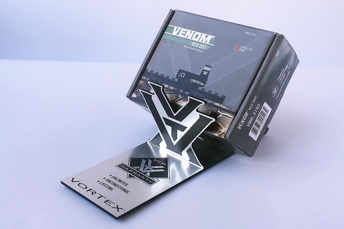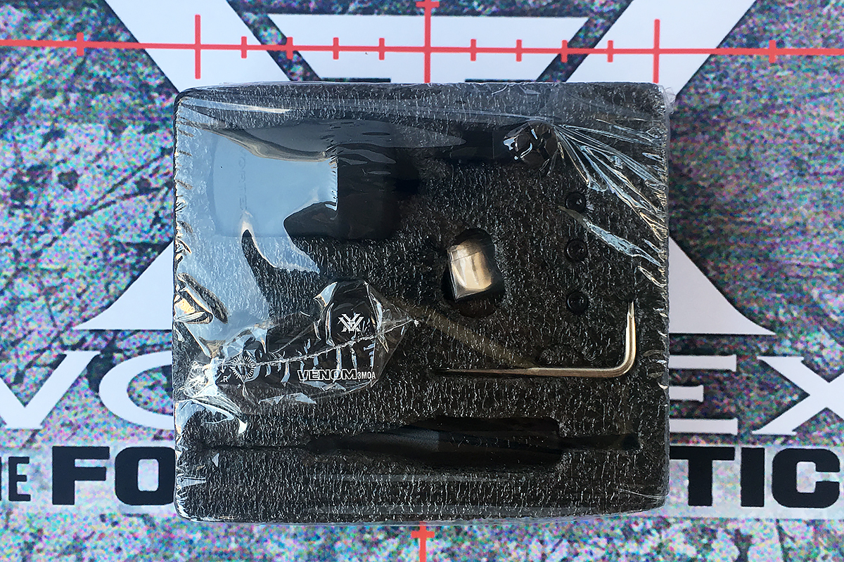 Комплектация прицела Vortex Venom Red Dot, 3 MOA: Коллиматорный прицел; Крышка коллиматорного прицела; База для установки на планку Weaver/Picatinny; Литиевая батарея СR1632; Отвертка для отвинчивания крышки батарейного отсека, внесения вертикальных и горизонтальных поправок; Монтажный ключ Torx T-15; Крепежные винты; Инструкция по эксплуатации; Салфетка для ухода за линзами. __