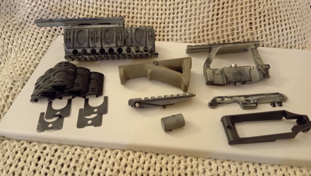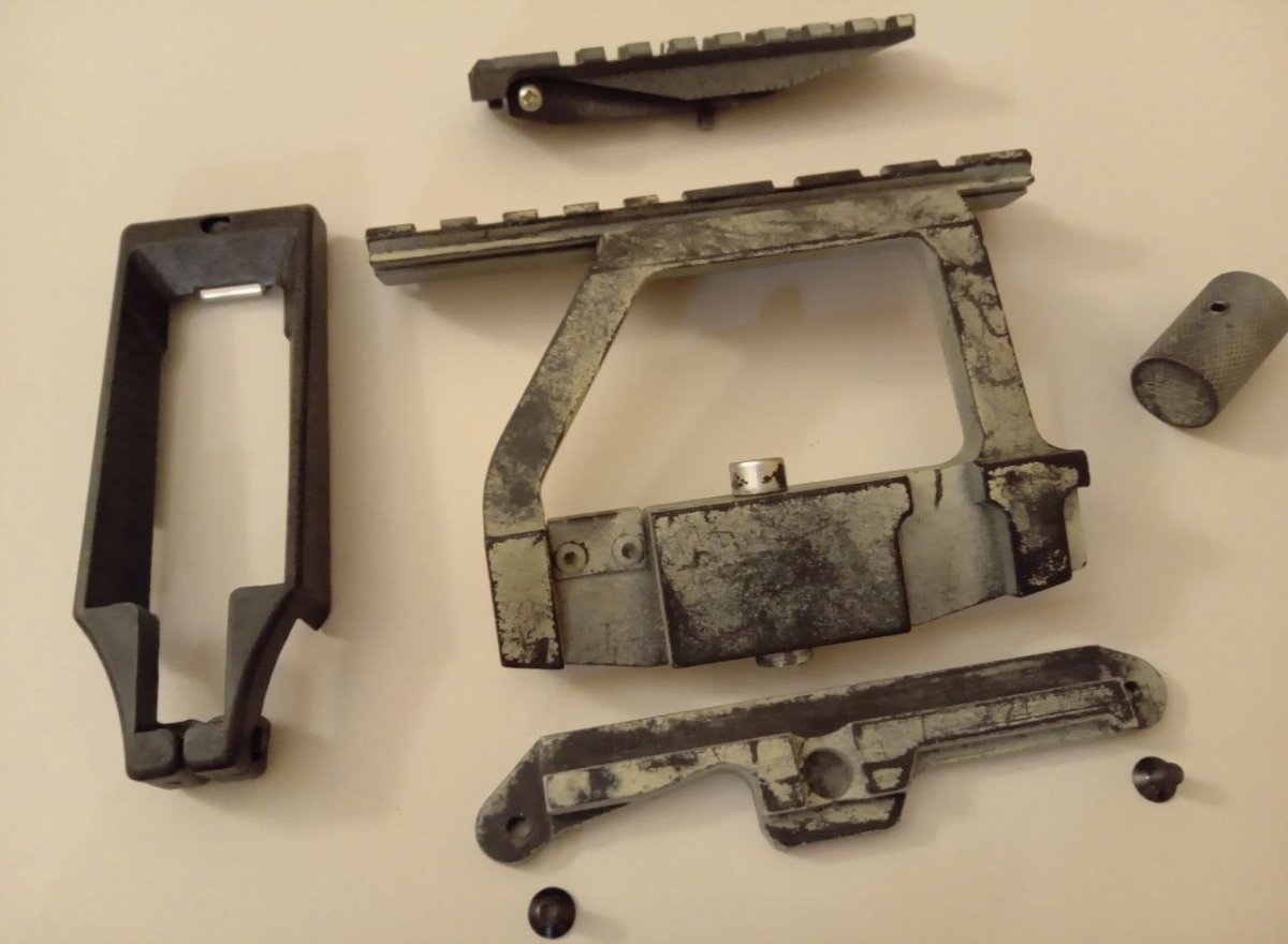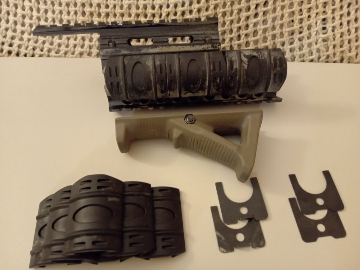 Резерв на -рис-цевье алюминий, с накладками и проставками -рис-целик, -увеличенная рукоять затвора АК (тромикс), сталь -разширенная шахта магазина АК, пластик Если будет разбор лота