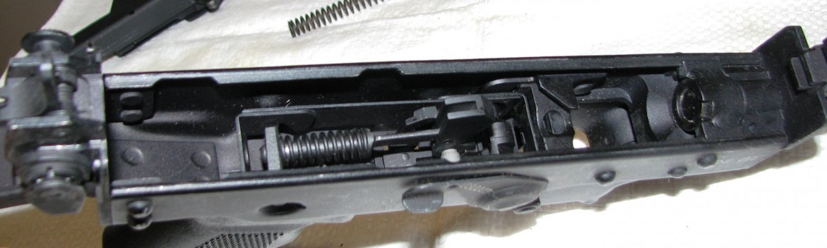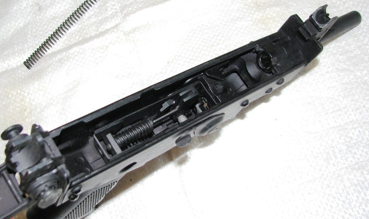 В комплекте паспорт, кобура, два коротких и один длинный магазины, кобура и дополнительно комплектный УСМ с функцией "фулл-авто".
