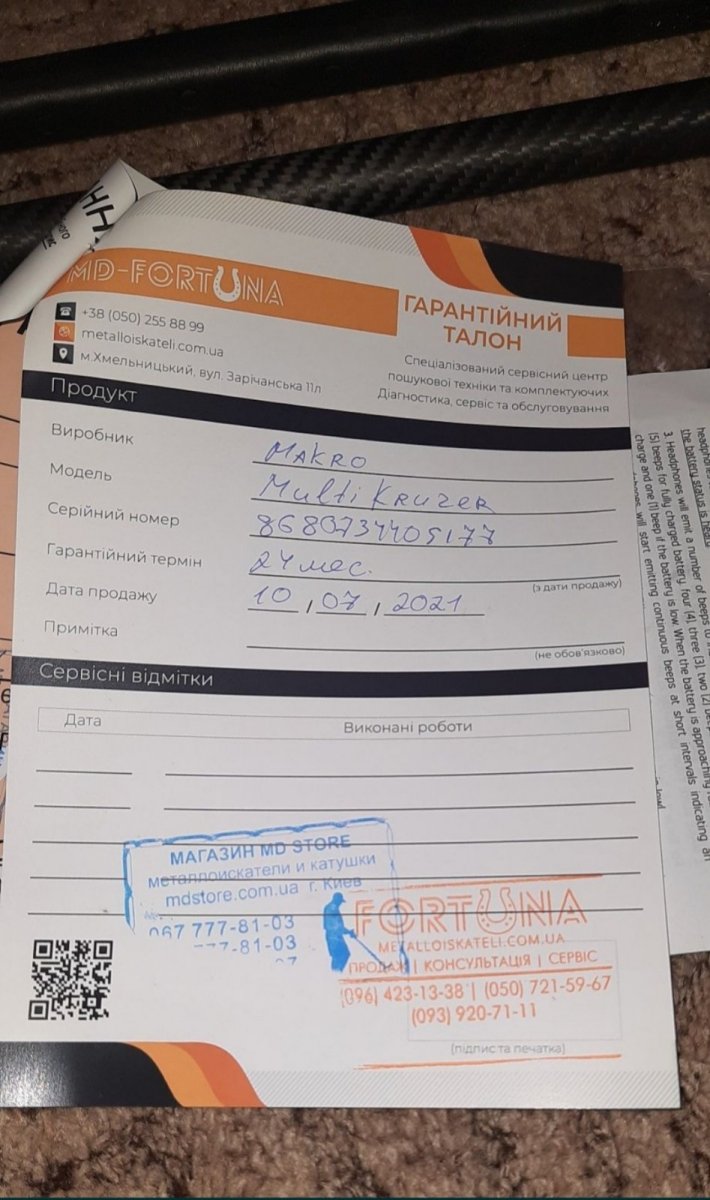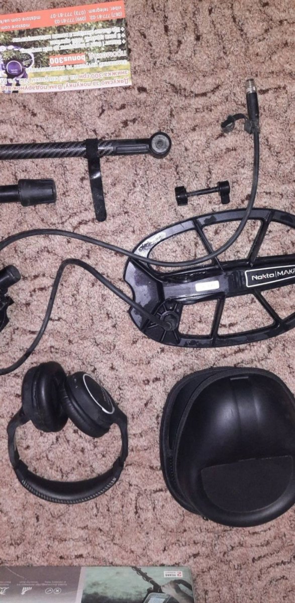 Продам металлоискатель нокта макро мульти крузер. Покупал летом 2021. На гарантии до 2023 г. Выходов было 7. По воде не ходил. Все работает. К металлоискателю дополнительно пинпоинтер Gold hunter, box для наушников и каплезащитный чехол на блок. Есть небольшой скол на защите катушки фото 6 Комплектация: Блок на s штанге. Средняя штанга. Нижняя карбоновый штанга. Болт крепления катушки. Катушка с защитой. Беспроводные наушники. Кабель зарядки мд Кабель зарядки наушников. Коробка и документы. Инструкция чуток намокла и пару листов склеялось..Хотелка 12000грн. Возможен торг....