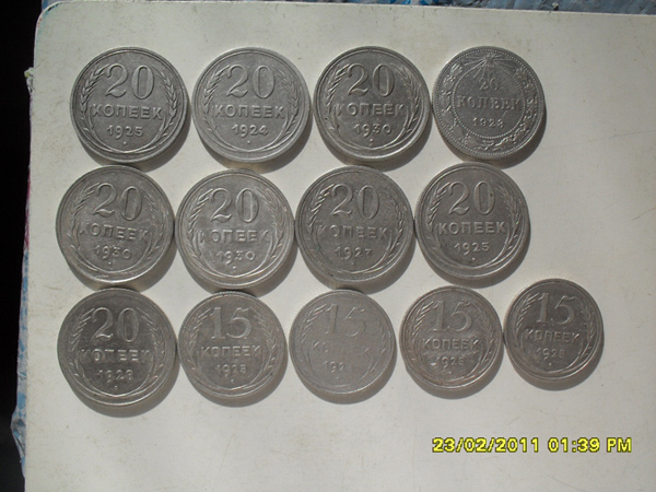 5 монет продано в штемпельном блеске. В продаже остались;20 к 25 год, 20 к 24 год, 20 к 30 год, 20 к 27 год, 20 к 23 год, 15 к ( 3 шт) 25 год. Прошу 90 грн и мой пересыл. Или по штучно по 15 грн любая.