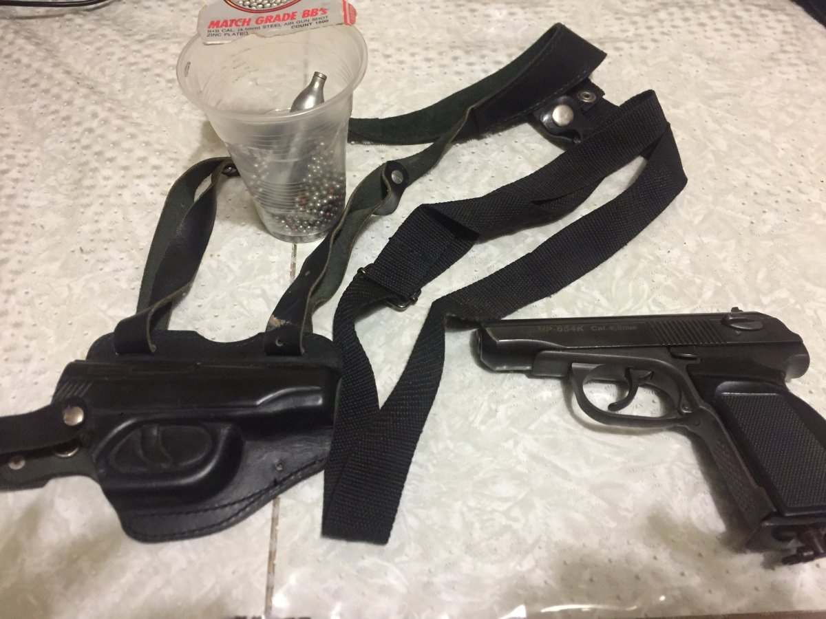 Продам свой пистолет МР-654К , покупался лет 8-10 назад, доки с коробкой и ремкомплектом утеряны при переезде. Пистолет рабочий, номерки везде совпадают, состояние по фото, кобура в комплект с пульками и баллоном. Высылаю наложкой, можно при встрече Херсон. Цена 2300грн