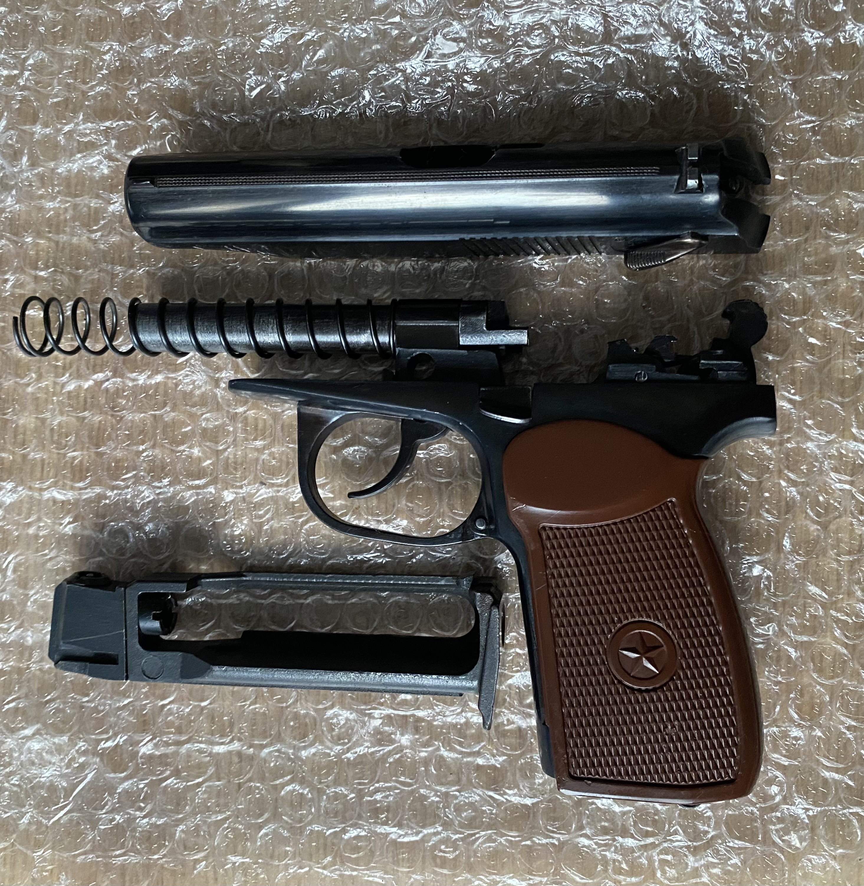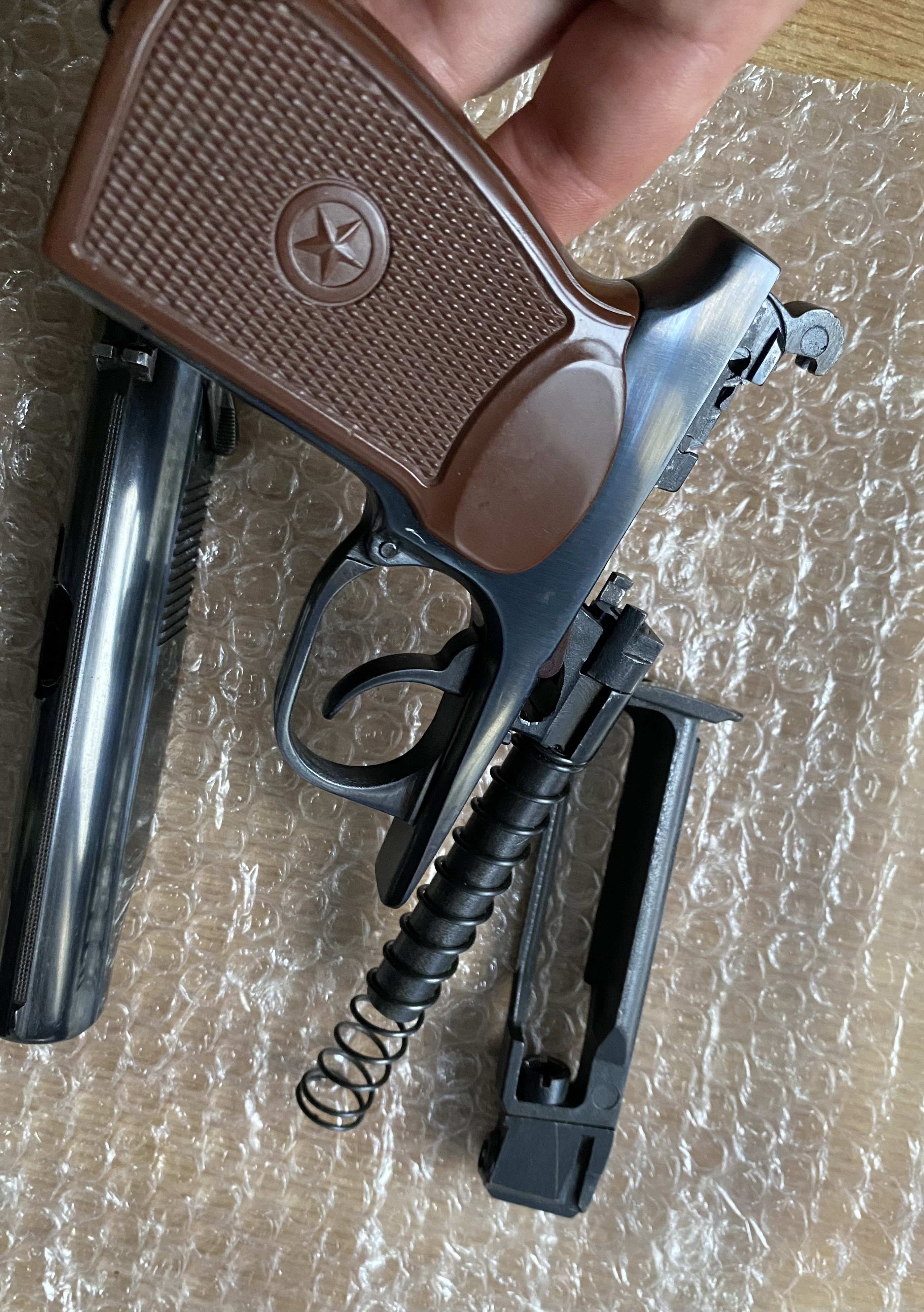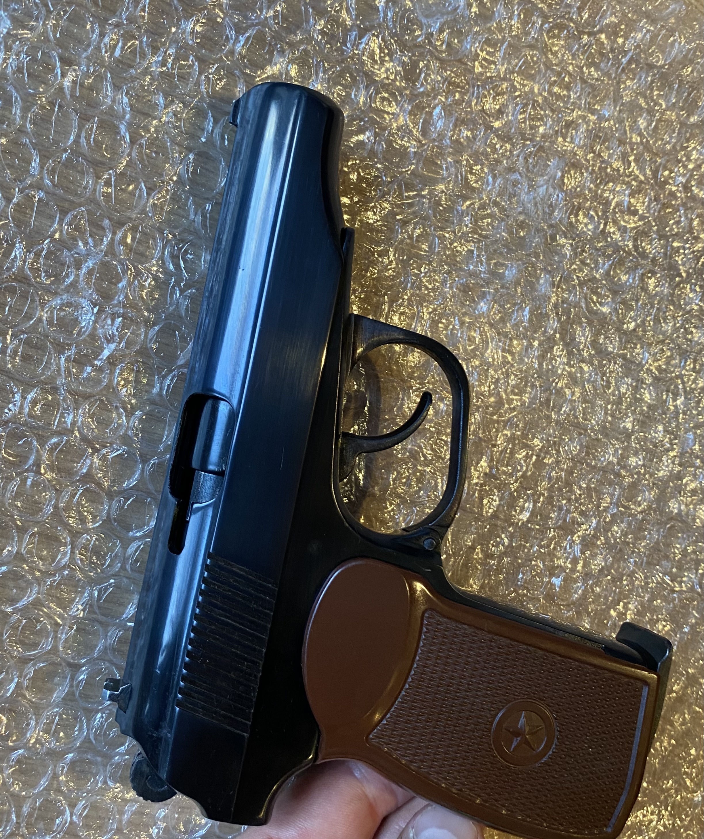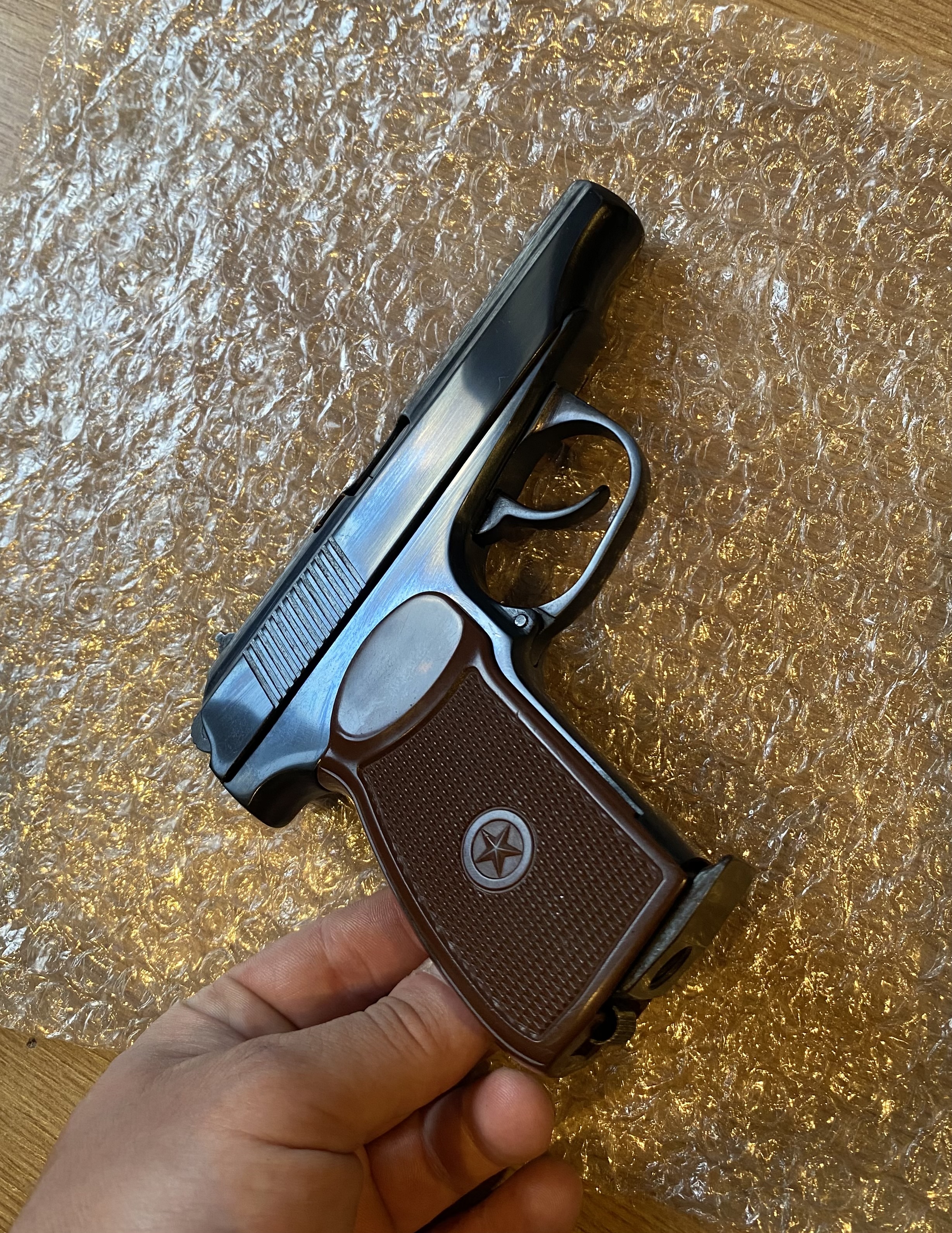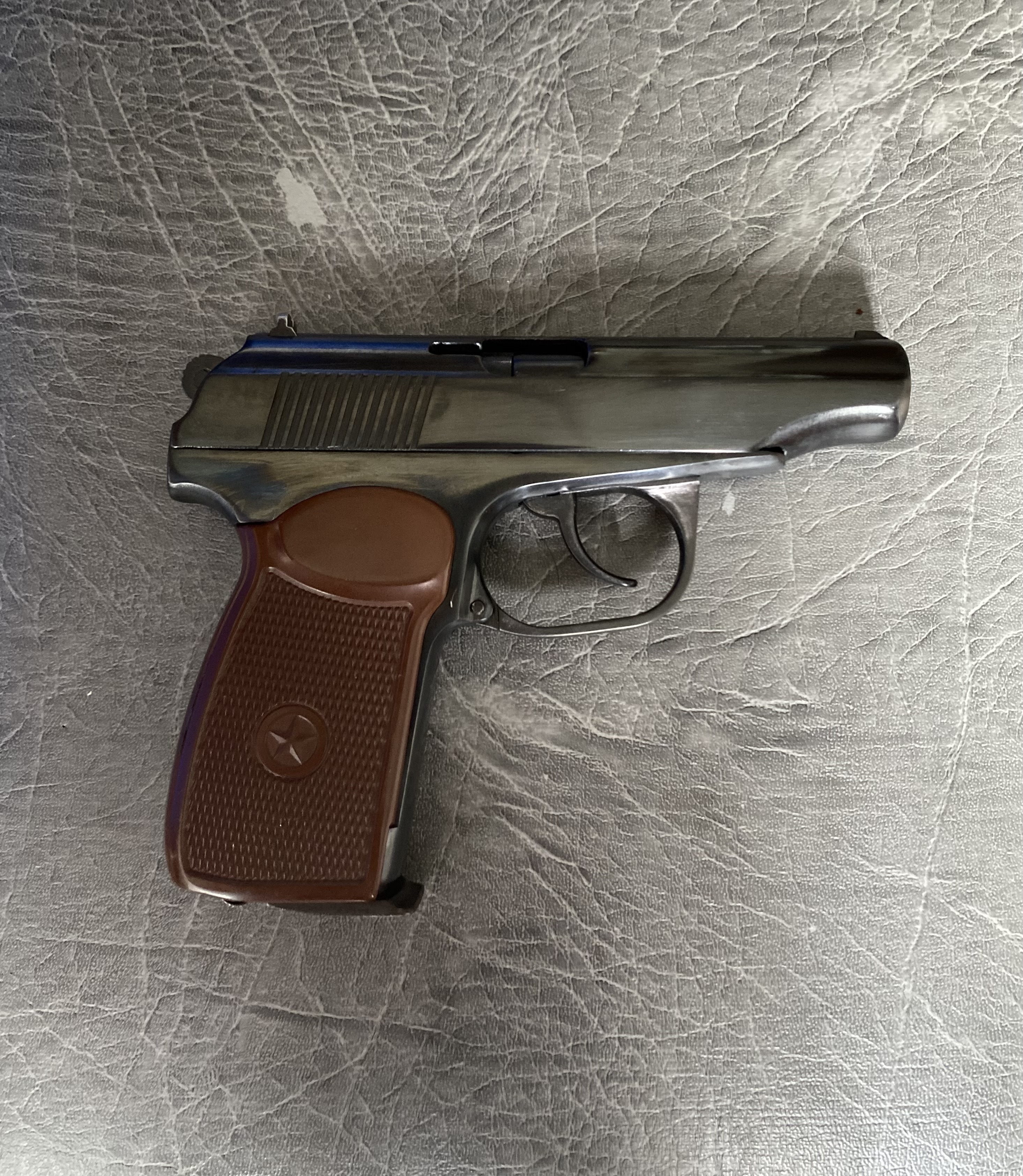 К вашему вниманию Мр654к Отличное глянцевое воронение. Снят весь пескоструй ,насечки ,наплывы,заполирован и поворонён методом оксидирования.Рамка не пилилась!стоит пластиковая рукоять Из красного -спусковая тяга. Поджимной винт -скрытый Магазин сток. сидит плотно.Не травит. Ничего не болтается ,все на одном номере. Комплект:пистолет,пластиковая рукоять со звездой. Цена 8200