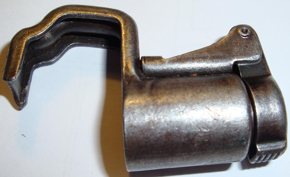Надульник надевается на ствол карабина и предохраняет оружие от попадания грязи в канал ствола. В прекрасном коллекционном состоянии. Родное воронение сохранилось на 30% Клеймо военной приемки - "курица"с буквами и цифрами. Цена - 300 гривен.