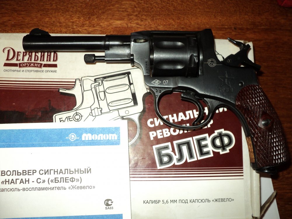 Продам наган блеф 1938 г.,переделан в 2007г, состояние новый, было сделано 10 выстрелов для проверки, в комплекте коробка, документы, 7 капсюлей, цена 500 у.е. продажа в гривне по курсу на момент продажи.