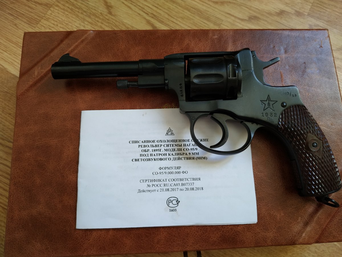 Хочу предложить многоуважаемой публике холостой НАГАН СО-95/9 1932 года под патрон 9мм(9х19 бланк). В барабан конкретно данного экземпляра отлично встают холостые 10х24! ( В остальных пляшут). На мой взгляд лучший деактив! Под две разновидности патронов! Отсутствуют пропилы как на 172 и бестолковые надписи как на РНХТ. Самый громкий из наганов! Цена. 8000грн (торг). Комплект наган, паспорт, подарочная шкатулка. ( могу добавить холостых 9мм или 10х24,по договоренности)