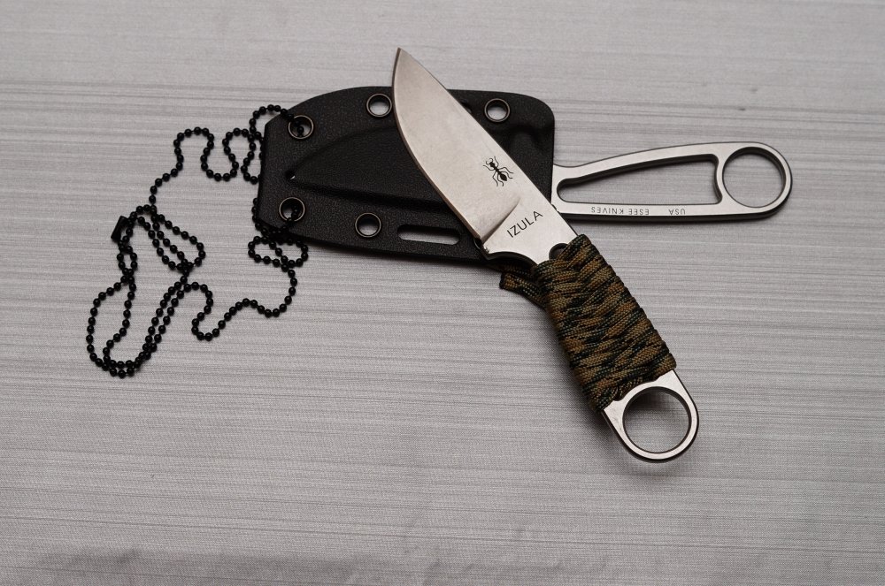 Я понимаю о чем вы говорите, посему приведу цитату: "Самый-самый нож выживания? Это как раз тот, который оказался у тебя в кармане Если ты потерял все свое снаряжение на перекате или в какой-нибудь другой катастрофе на лоне природы, простой карманный нож может спасти тебе жизнь. Немногие дискуссии проходят с таким жаром, как обсуждения вопроса выбора ножа выживания. Одна школа стоит на том, что нож должен быть большой и чтобы им можно было делать всё. Неприятность, однако, заключается в том, что походный нож, тот единственный, на который ты сможешь положиться, столкнувшись с необходимостью выживания, лежит у тебя в кармане, висит на поясе или болтается на шее. В то же время большой тесак упакован в рюкзаке, затонувшем в озере при опрокидывании байдарки, и ничем он тебе помочь не может." И на этом прошу закончить рассуждения на тему ножа для выживания, это тема о продаже копии ESEE IZULA который в силу своего легкого веса, надежности, удобства крепления и поверте удобства использования может в разных ситуациях стать и ножом для выживания и клинком для самообороны и городским EDC.