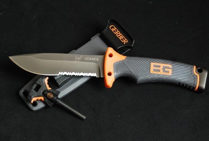Нож Gerber Bear Grylls Ultimate Состояние - новый, цена 650 грн. Нож выживания Беара Гриллса является флагманом линейки ножей выживания, разработанных знаменитым ведущим программы Ultumate Survival на канале Discovery Беаром Гриллсом (Bear Grylls). Лучше всех про этот нож может рассказать его создатель - Bear Grylls: http://www.youtube.com/watch?v=ivOvUThMcnM&feature=player_embedded Заточка ножа Gerber Bear Grylls Ultimate полусеррейторная. Спуски прямые, имеется заводская заточка. Серрейторная часть выполнена весьма аккуратно. Лезвие имеет антикоррозионное покрытие черного цвета и выполнено из высокоуглеродистой стали. На обушке имеется площадка для использования лезвия в качестве кресала. Рукоятка эргономичной формы выполнена из рифленой резины. Очень удобна, не скользит даже во влажной ладони. Имеет выраженную подпальцевую выемку и развитую гарду с рифлением в верхней части. В гарде имеются два отверстия, которые предназначены для крепления ножа к древку, а также для крепления шнура при использовании ножа в качестве упора, якоря и т.п. Толщина и прочность ножа это позволяют. Навершие рукояти металлическое, с насечкой и предназначено для использования в качестве молотка. Рукоятка имеет отверстие для крепления темляка с расположенным на нем сигнальным свистком. На передней стенке ножен в водонепроницаемом гнезде расположено огниво, на задней стенке закреплен алмазный брусок для заточки режущей кромки. Устье ножен имеет пластиковые губки, обеспечивающие фиксацию ножа. Нож Gerber Bear Grylls Ultimate - отличный выбор для рыбалки, туризма, активного отдыха. Нож Gerber Bear Grylls Ultimate - отличный подарок! Характеристики: Материал лезвия: AUS-8A Твердость маталла: 58HRC Вес (с ножнами): 416,73 г. Вес (без ножен): 240,51 г.