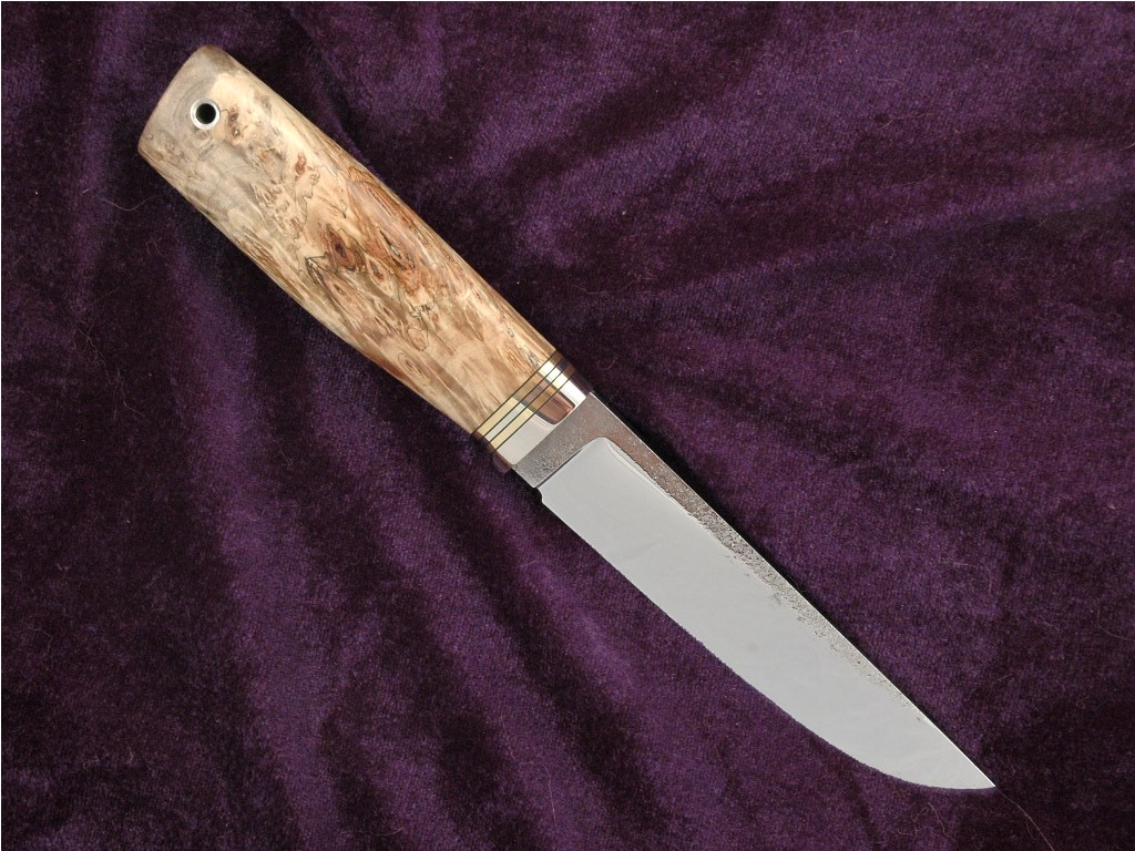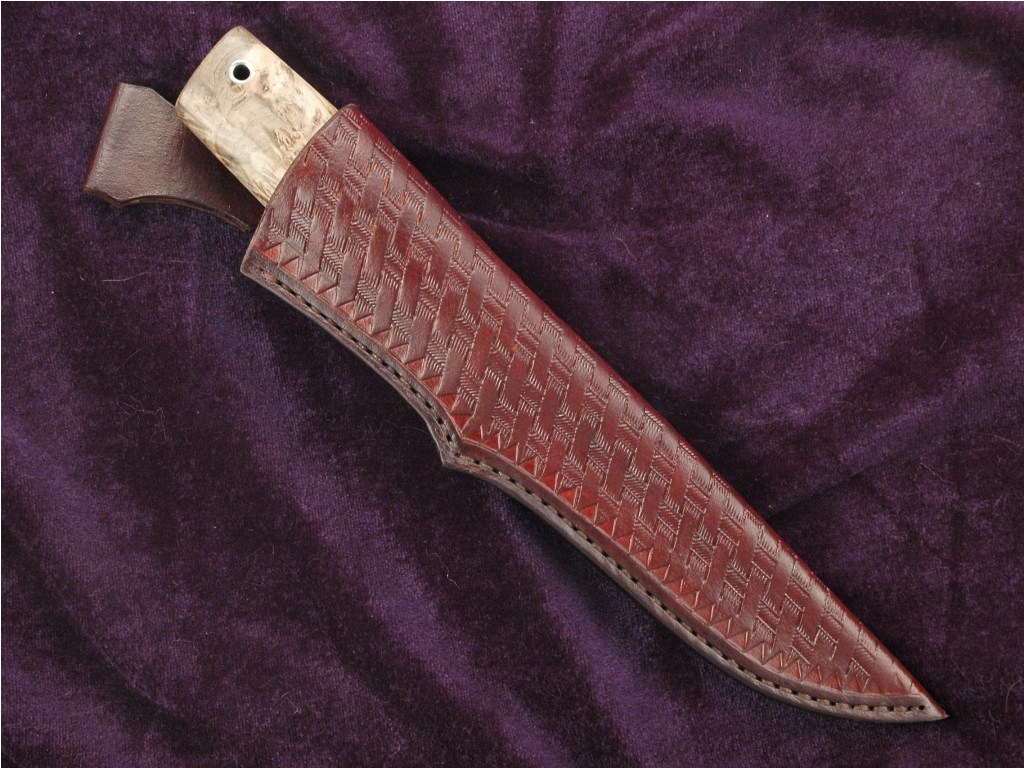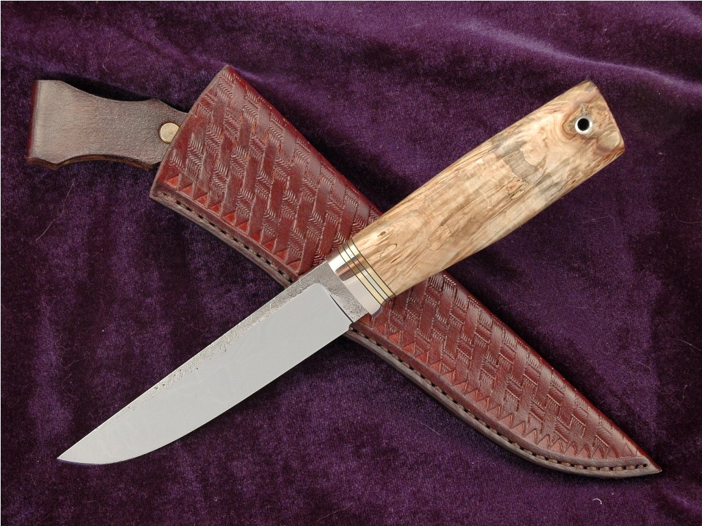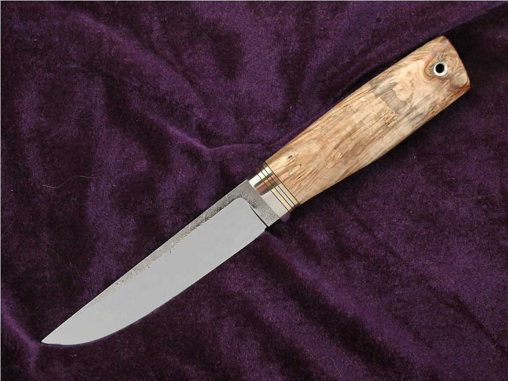Общая длина ножа 256 мм, длина клинка 136,ширина 28 мм,толщина по обуху 4,6 мм ,клинок сужается к острию. Клинок из стали К110 австрийской компания Böhler-Uddeholm(кованный и слесаренный Леонидом Ясинецким), рукоять - стабилизированный кап каштана. Больстер - мельхиор ,латунь,фибра. Трубка-мельхиор. Ножны кожа. Не является ХО, высота упора меньше 5 мм, а именно 3 мм. Заточен до состояния бритья. Ножи из кожи растительного дубления. Состояния ножа-новый, в эксплуатации не был.Цена 3 500 грн. Торг уместен, предлагайте цену не стесняйтесь. Нож собственного изготовления. Отвечу на все вопросы. ПРОДАН.