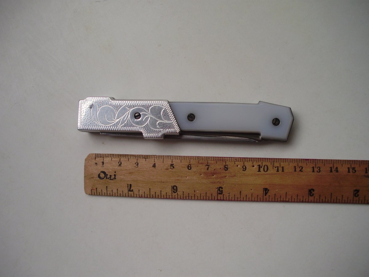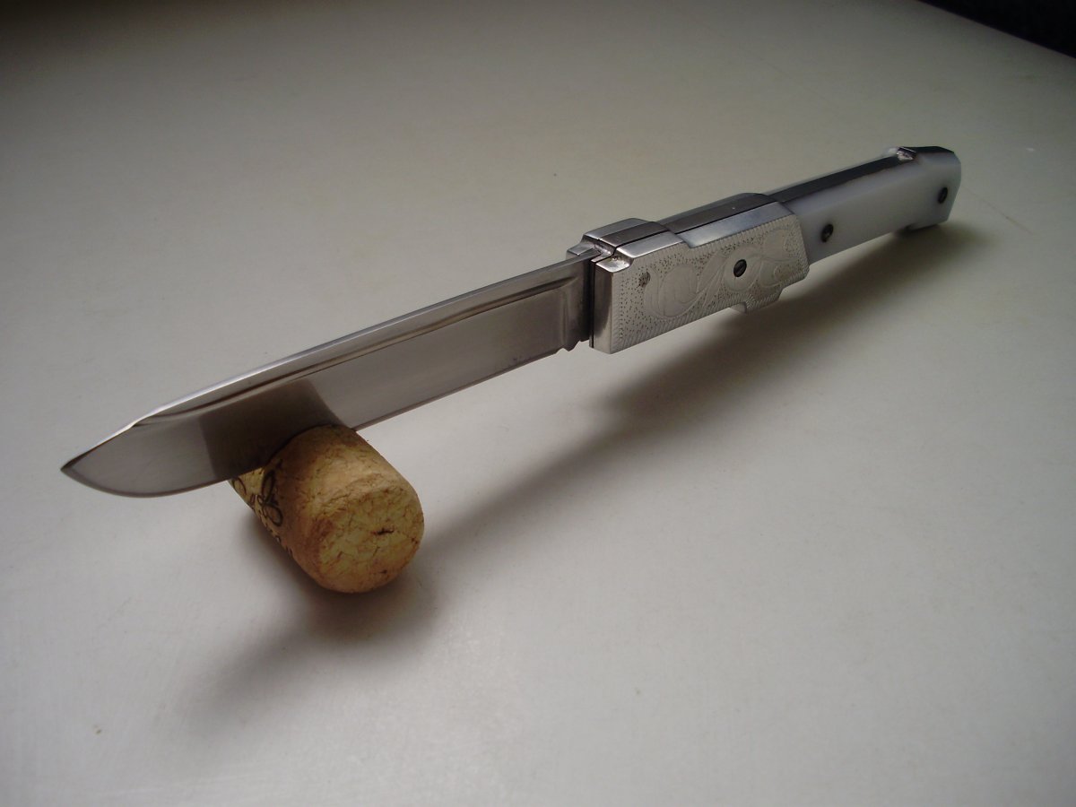 Сталь-ШХ15 длина клинка-100мм ширина-18мм толщина-2мм Механизм открывания ножа реализован на часовой пружине.Клинок по центру,люфтов нет. Цена-250грн
